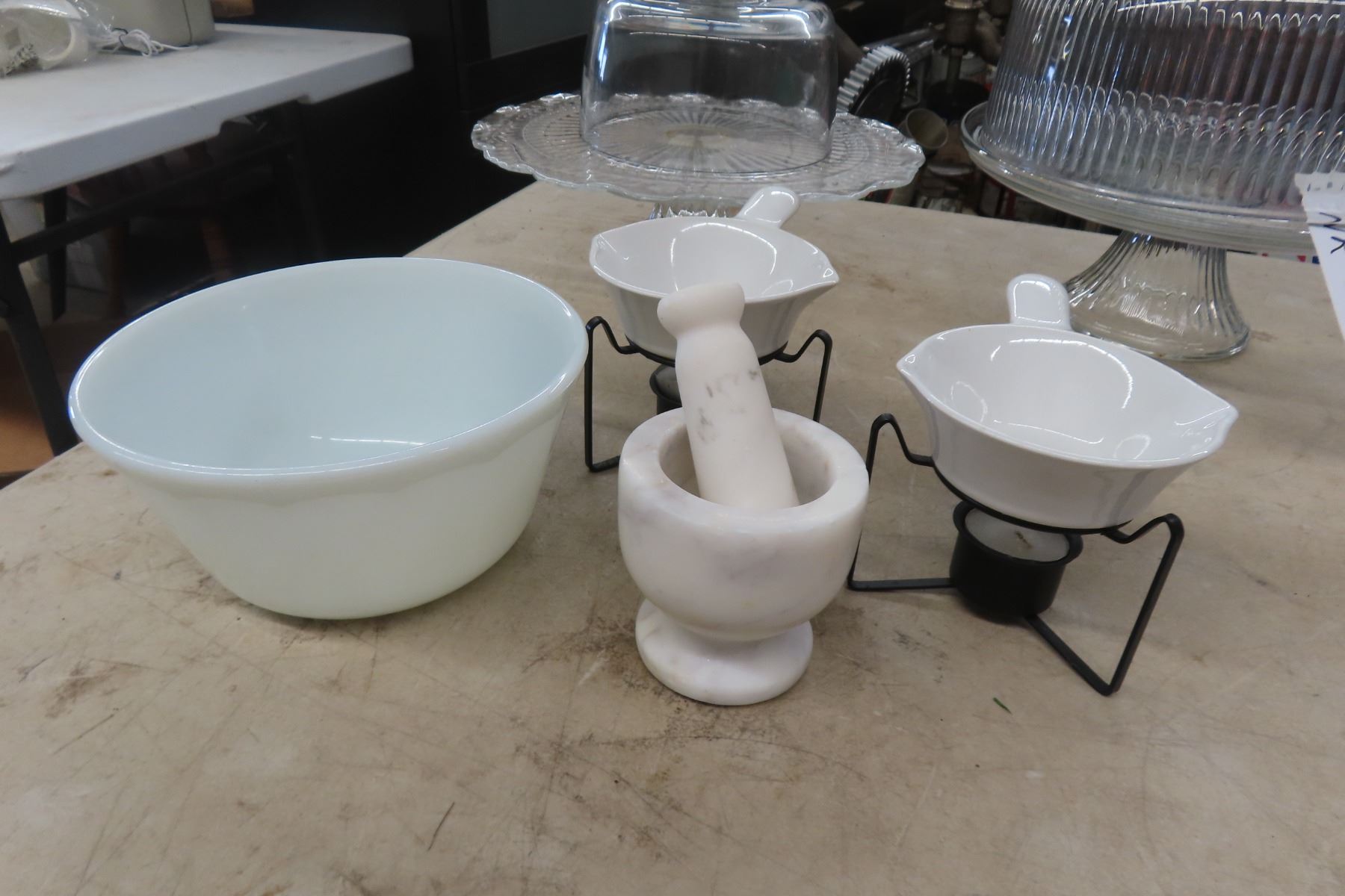 Serving Ware Covered Pedestal Cake Plate Platters, Butter Melting Bowls, Pestle and Mortar