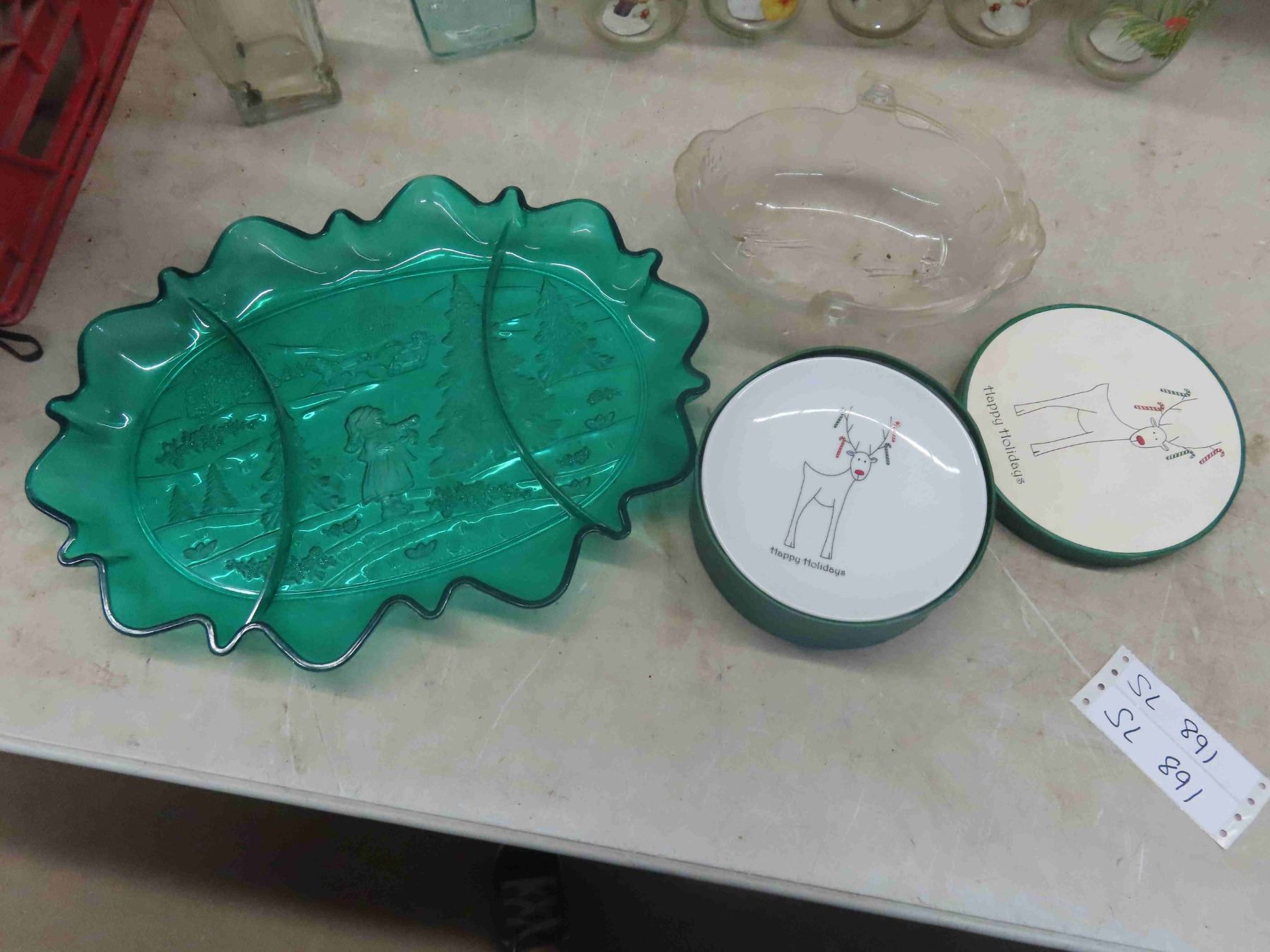 Servingware Sugar Bowls, Vase, 5 Decorative Bottles with Flip Cap, Trivots, 4 Xmas Plates & More