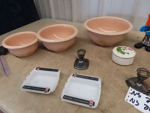 Set Cdn Potteries Mixing Bowls, Mashall Wells Ashtrays, Blown Glass Clown Ornament, Plus More!