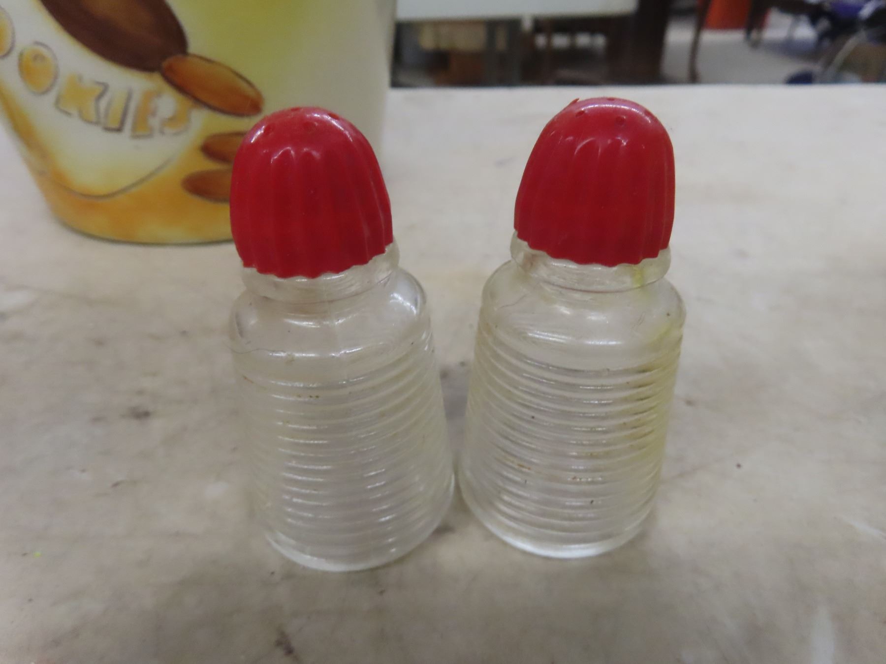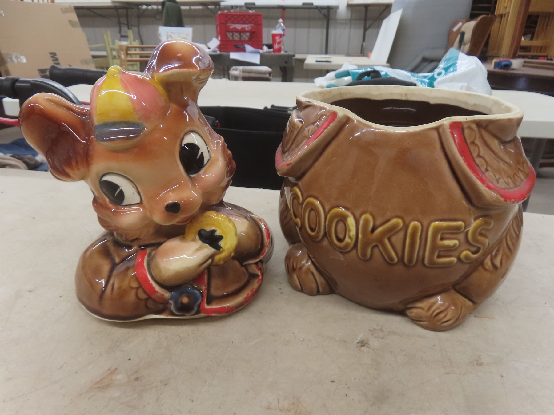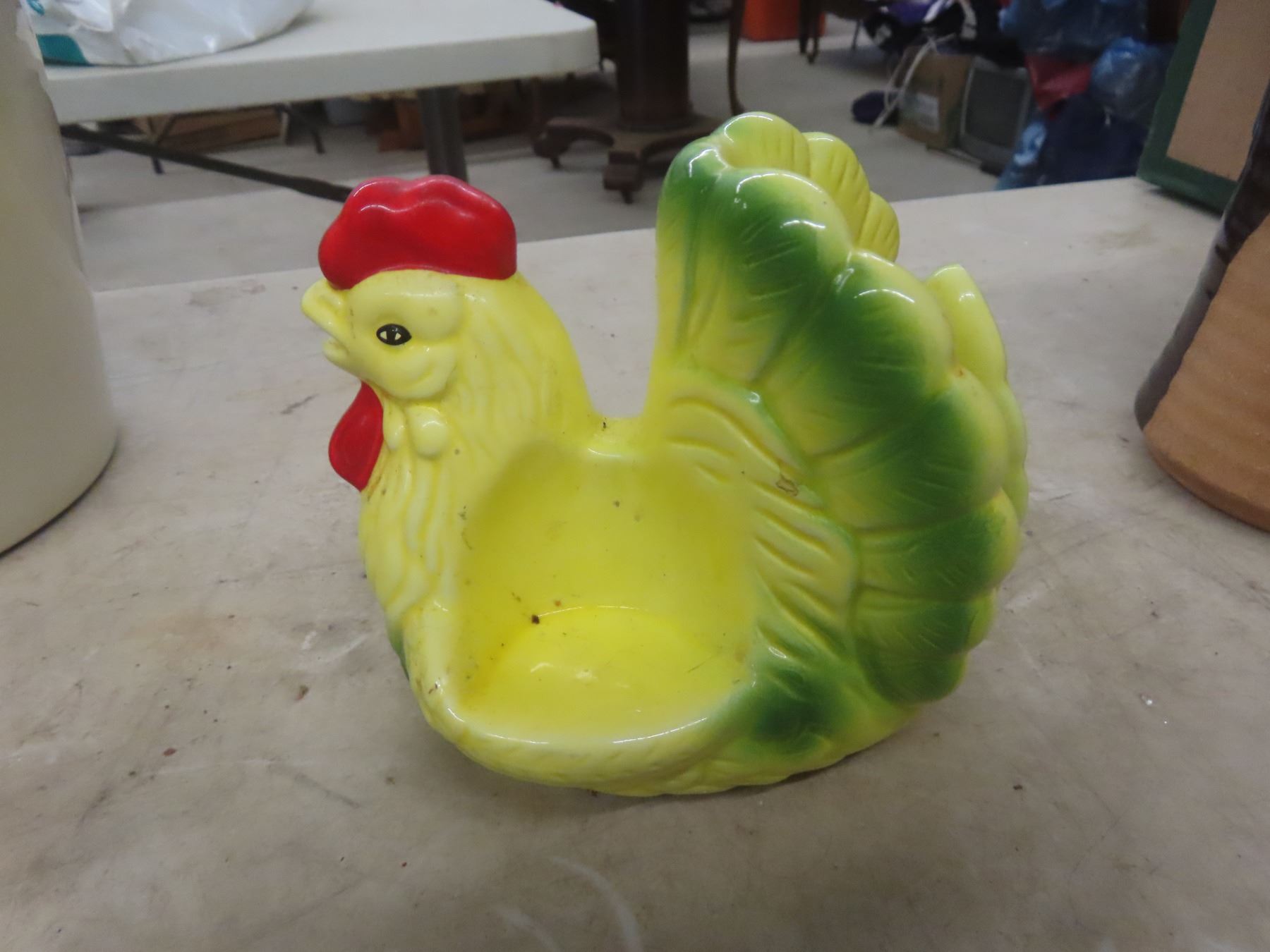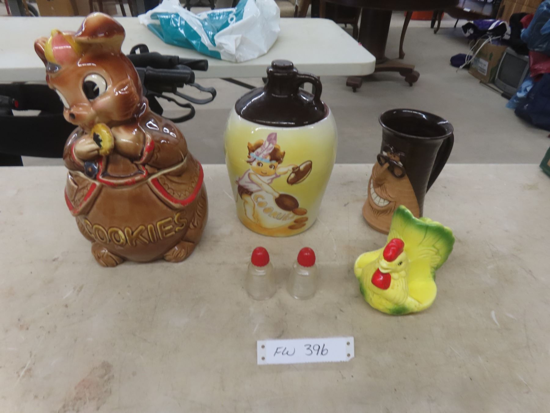 Set of 2 Cookie Jars, Chicken Salt and Pepper Holder, and Coffee Mug
