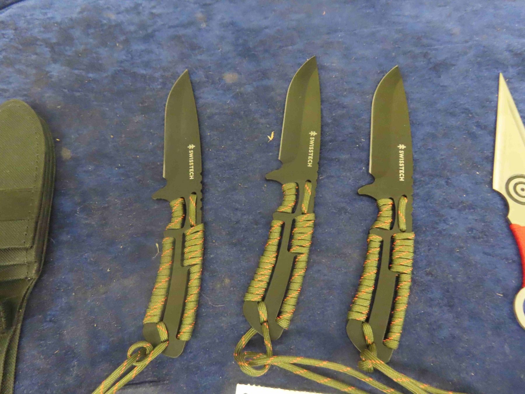 Set of 3 Swiss Tech Knives + Throwing Knife