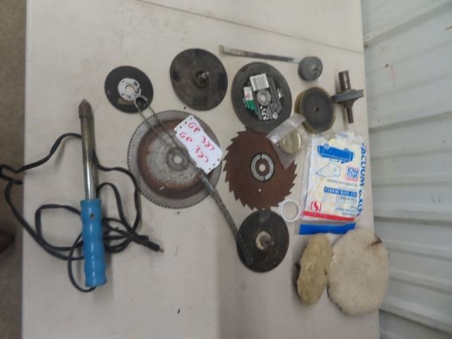 Set of 4 Hubcaps, OddsnEnds of Tools ; Saw Blades, Soldering Gun, Central Vacuum Connectors, Dewalt