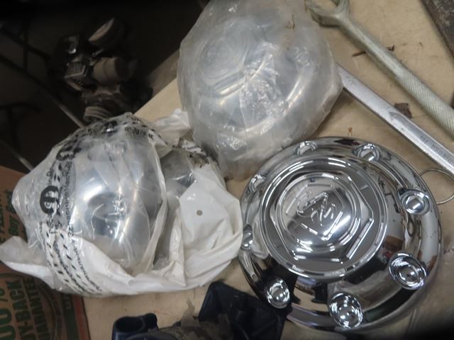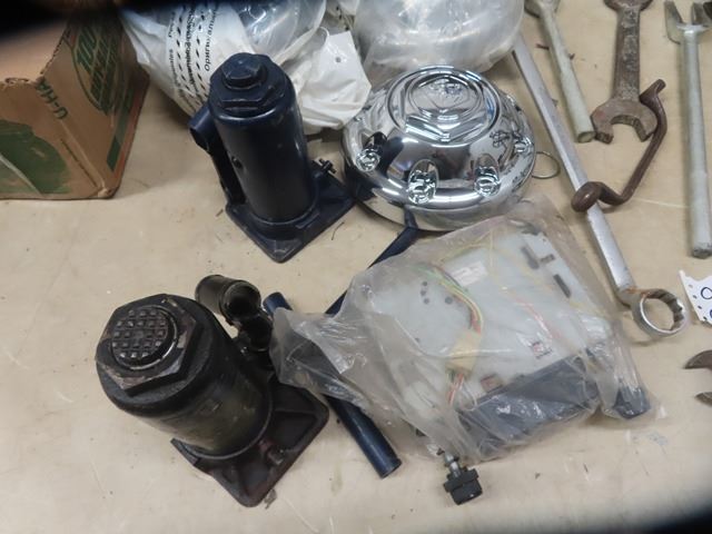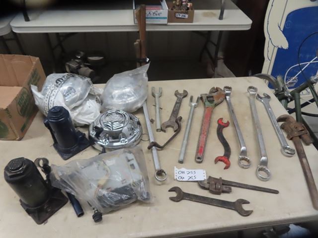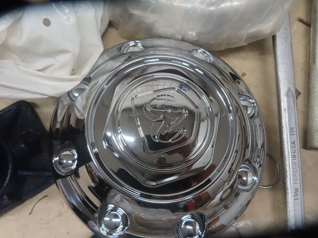 Set of 4 New Dodge Truck Hubcaps, 2 Hydraulic Jacks, Wrenches & Pipe Wrench