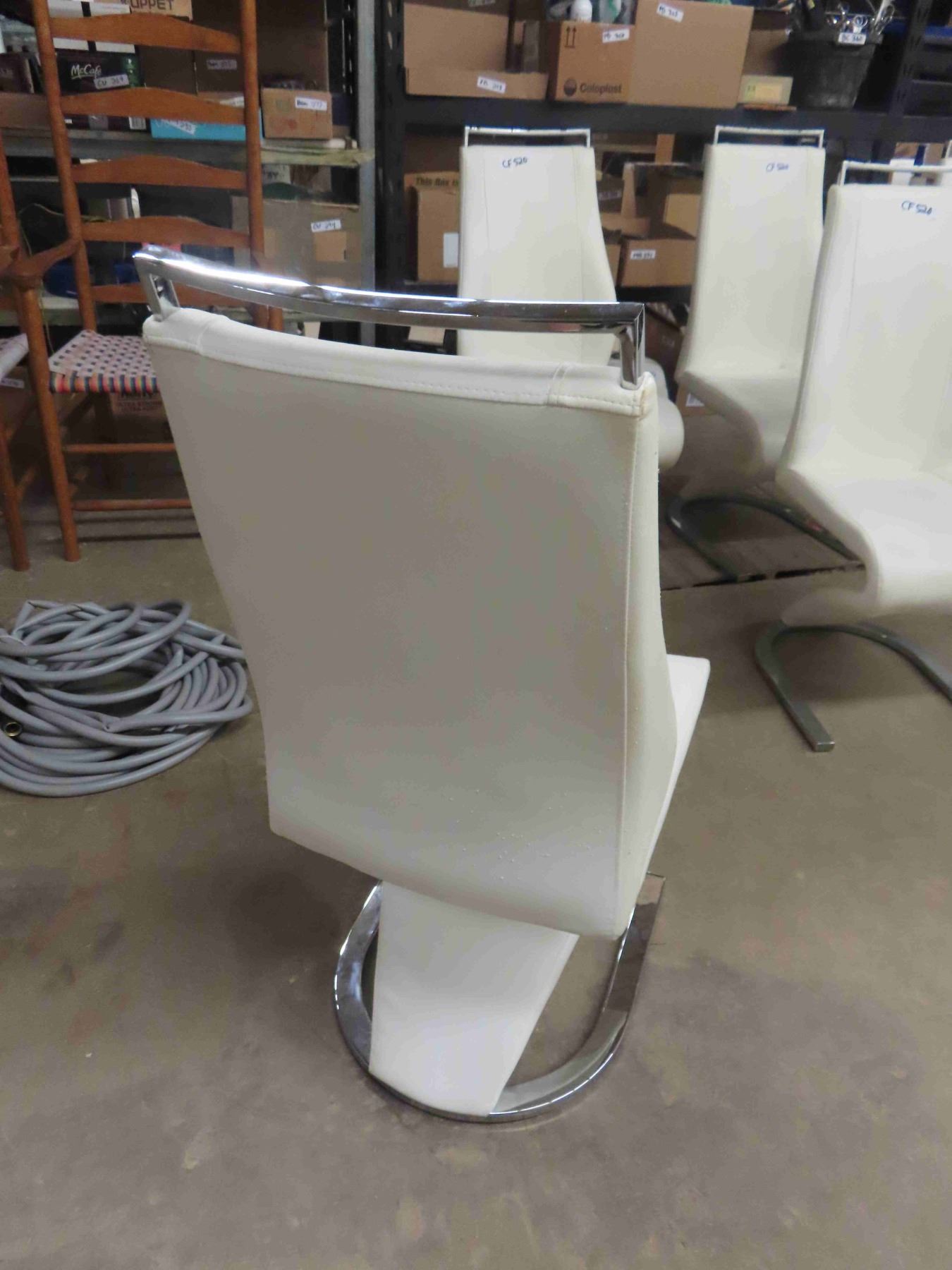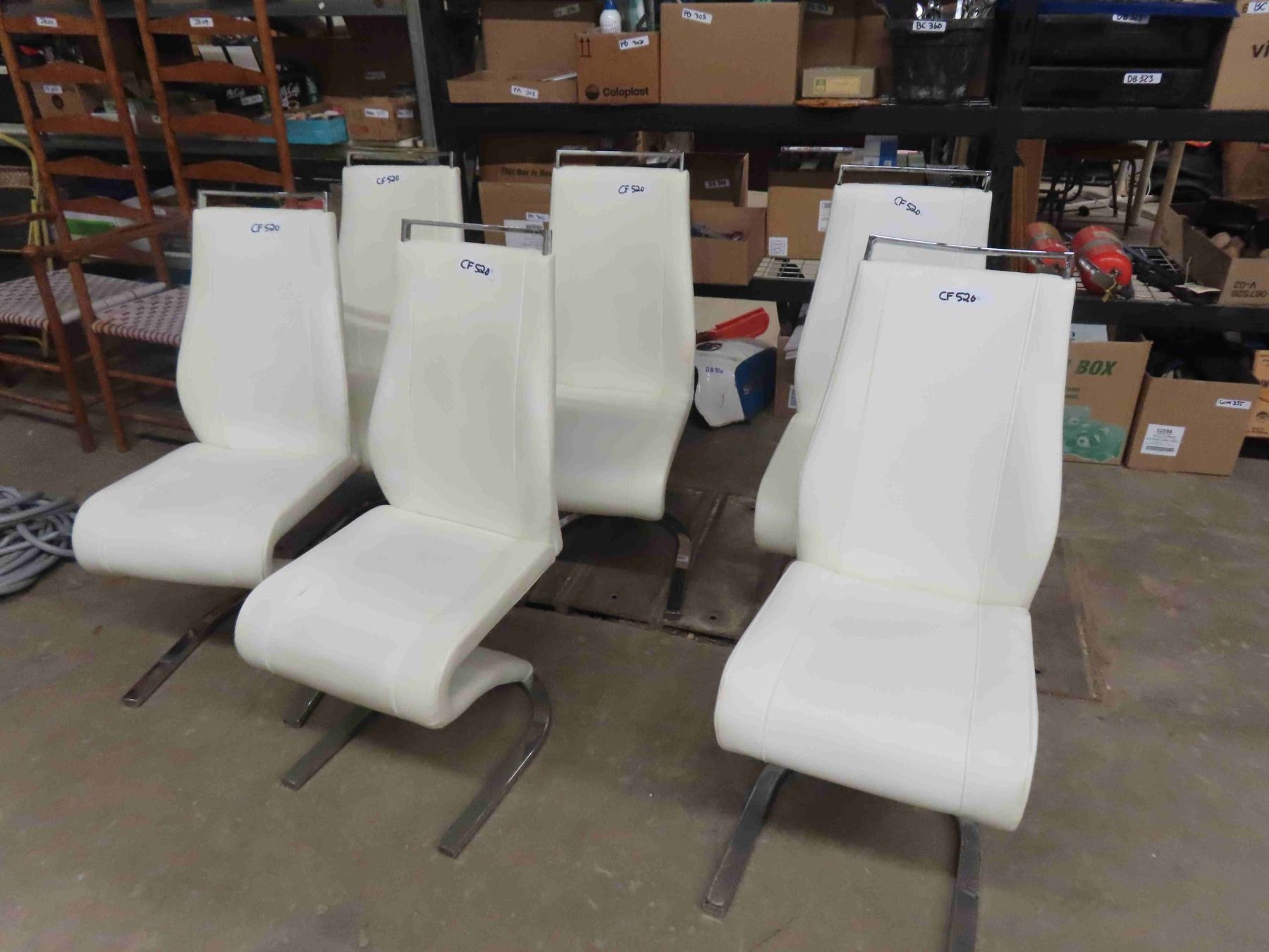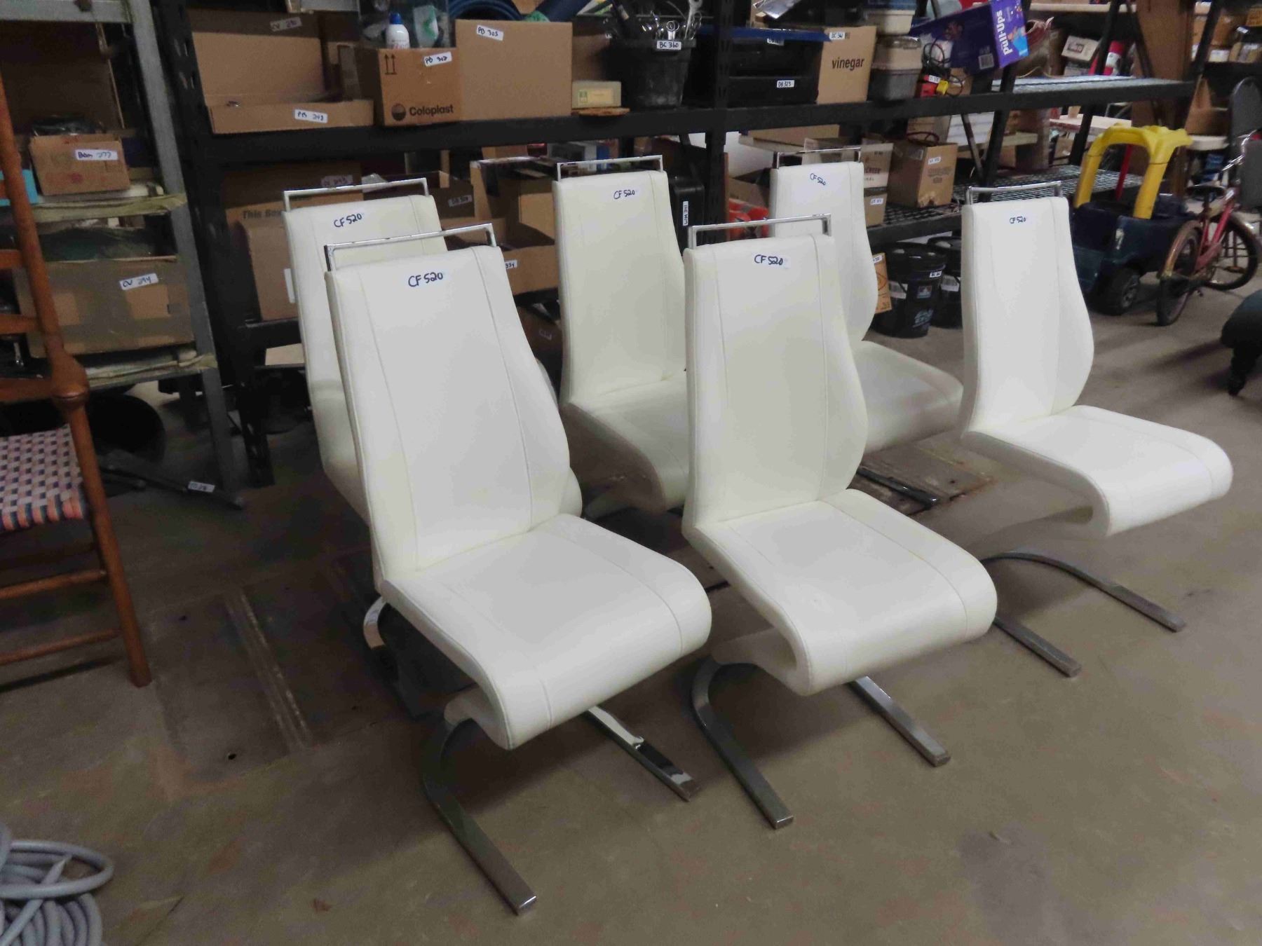 Set of 6 White Polyurethane Chairs with Chrome Horse Shoe Base