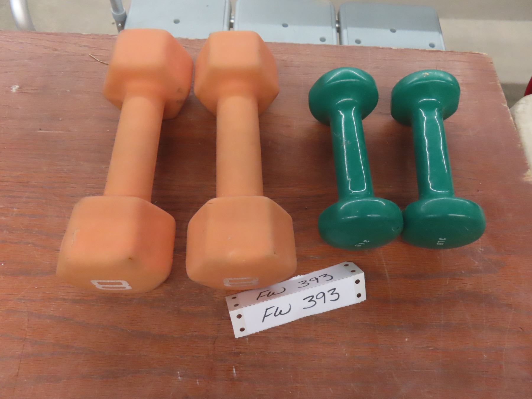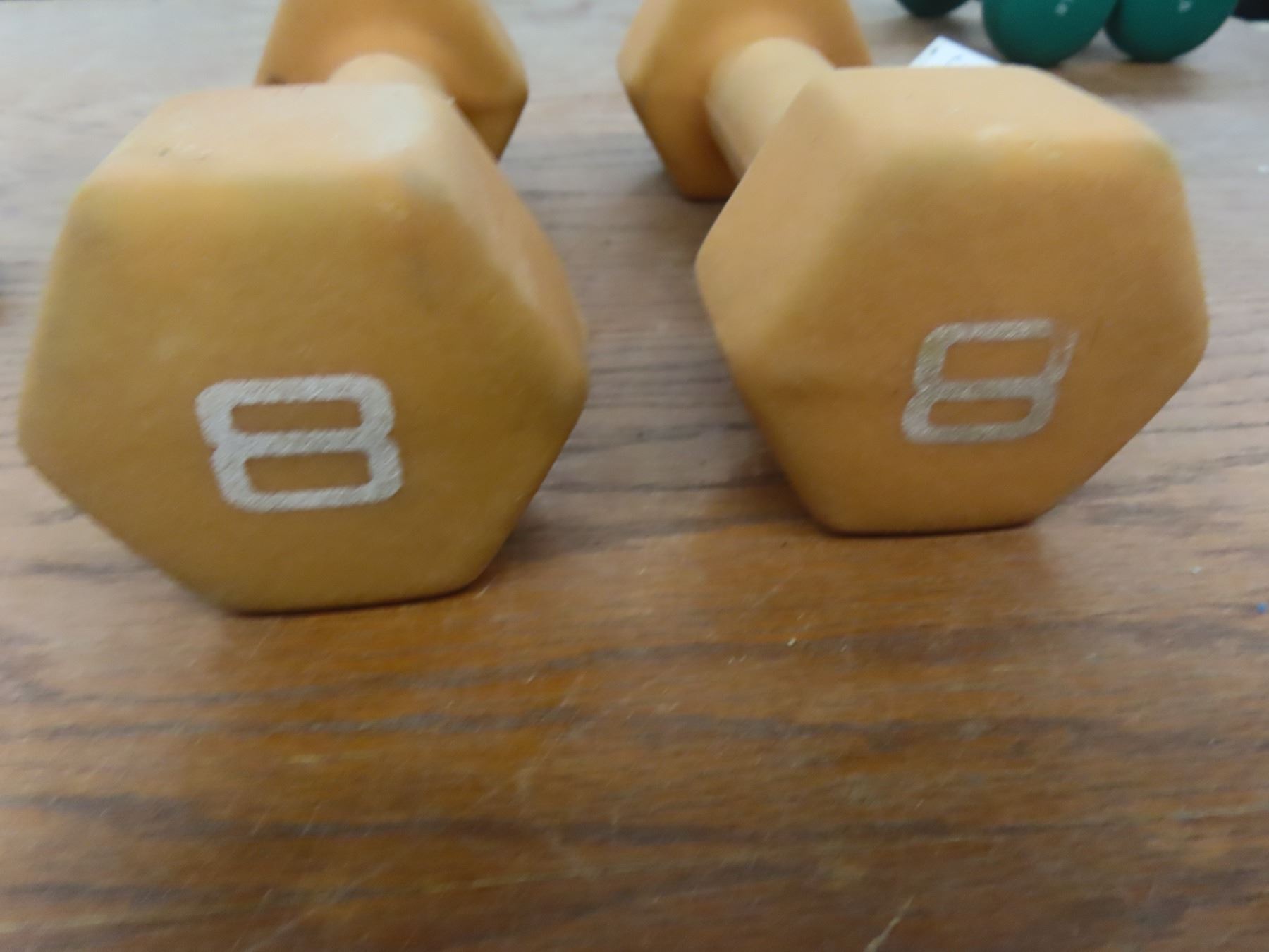 Set of Four Dumbbells: Two at 8 Pounds and Two at 3 Pounds