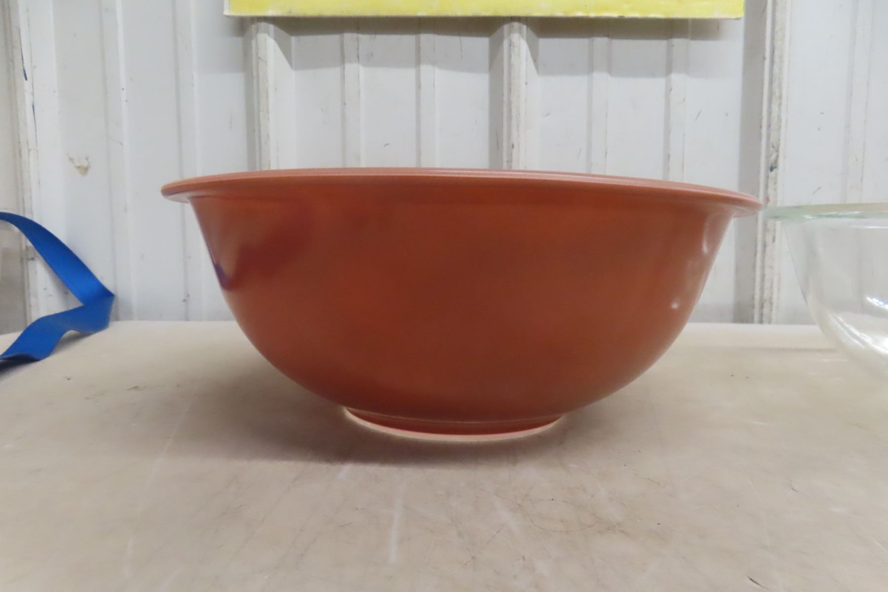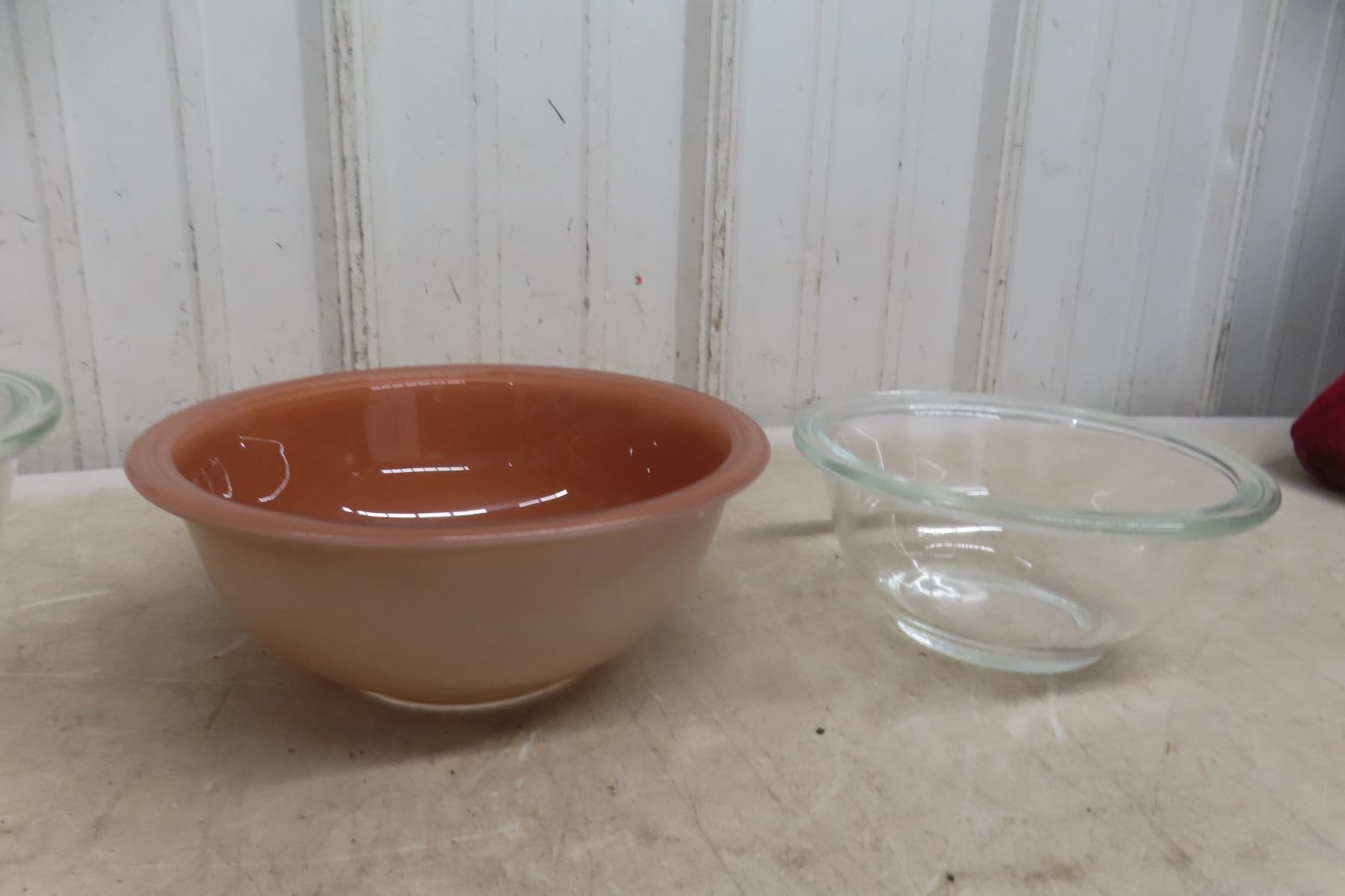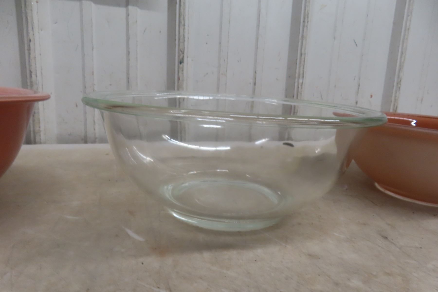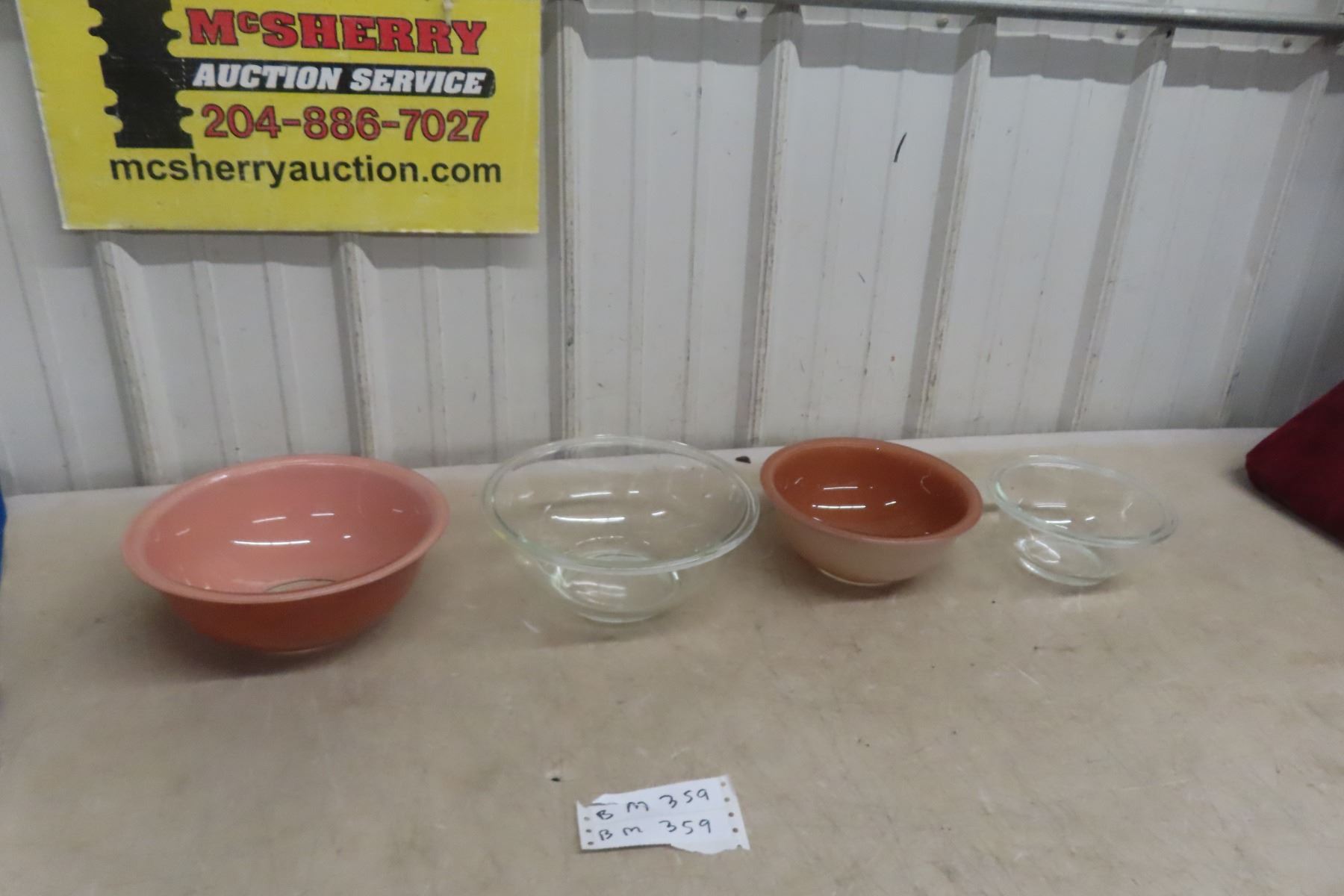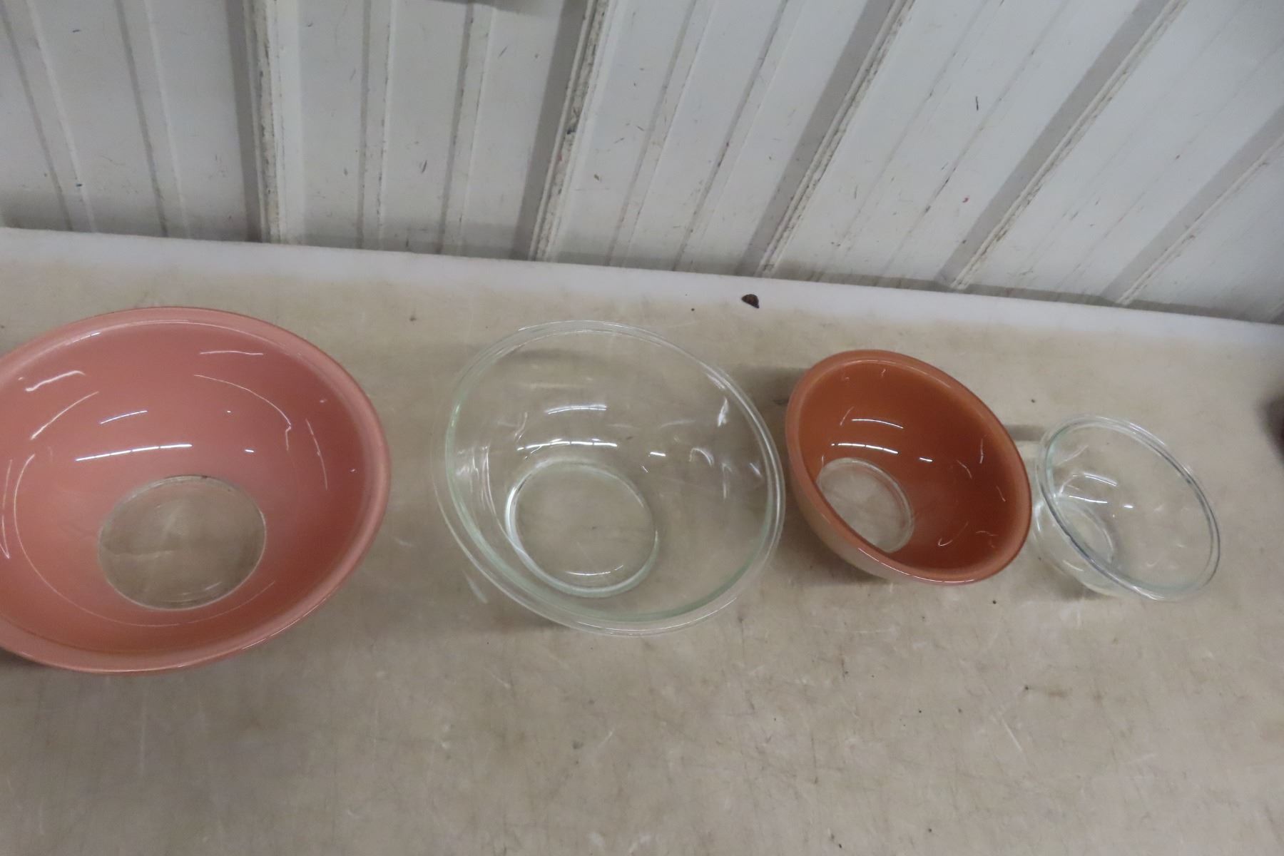 Set of Four Pyrex Peach Glass and Clear Mixing Bowls