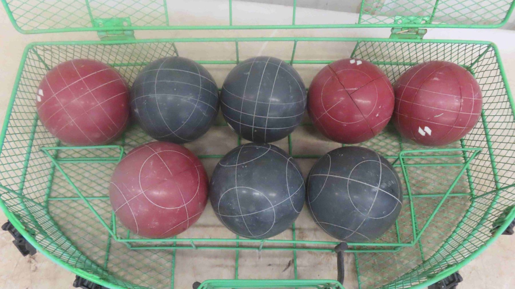 Set of Lawn Bowling Balls (4 Black, 4 Red) with Case