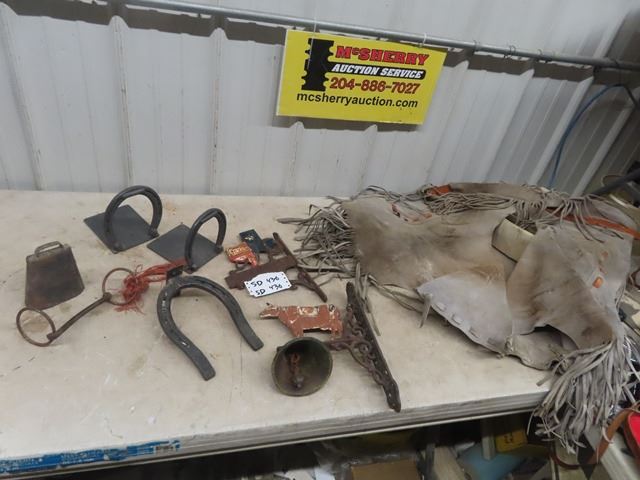 Set of Leather Riding Chaps, Wall Mount Bell, Horse Shoe Book Ends plus more