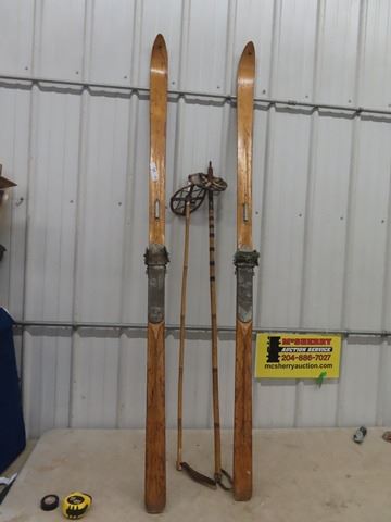 Set of Old Wood Skis w Poles 78" Long