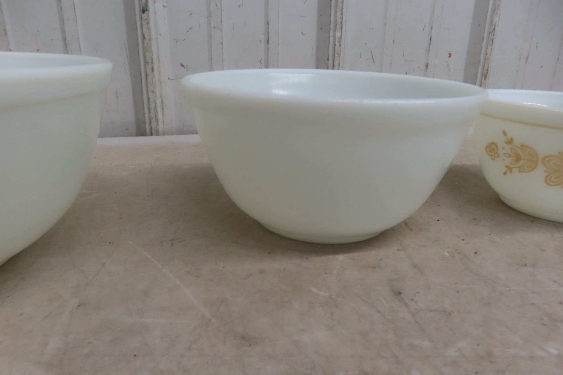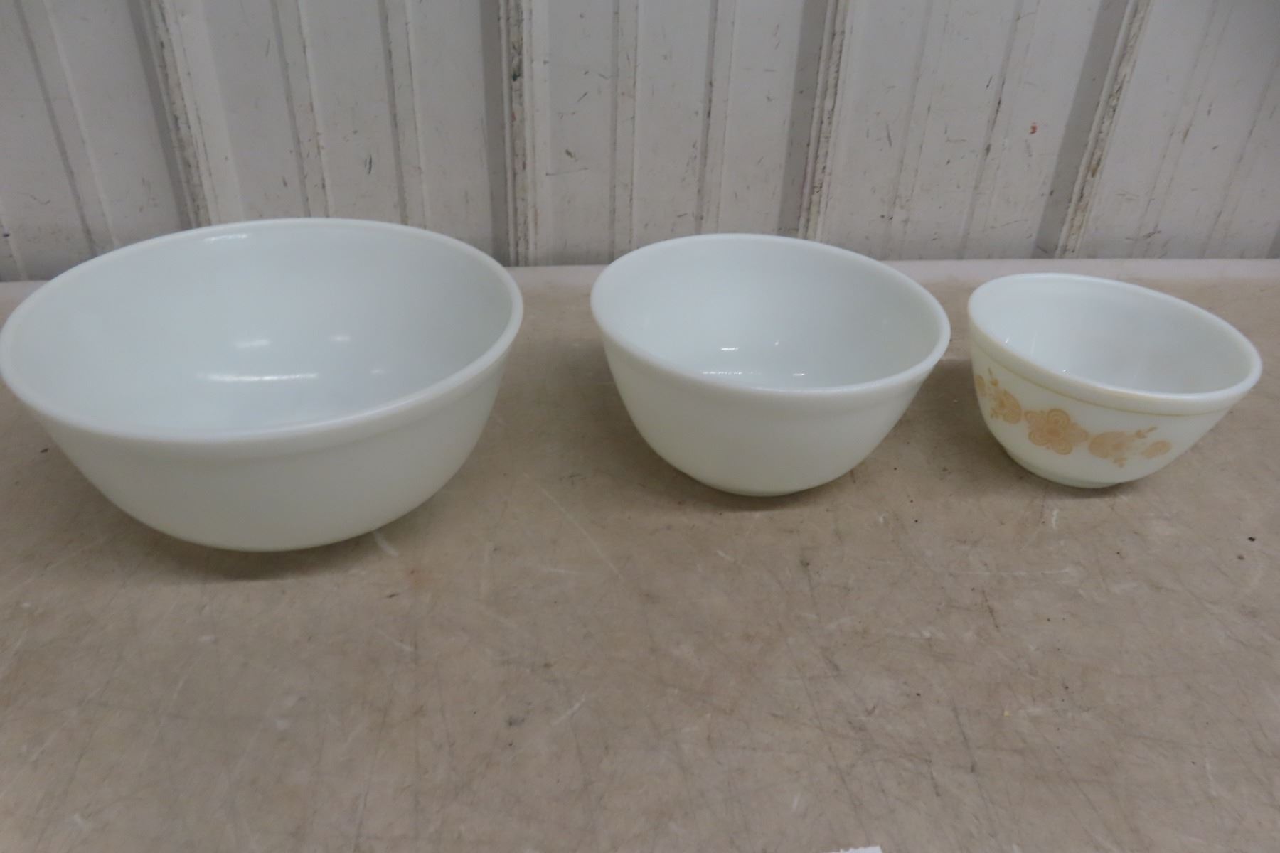 Set of Three Vintage Pyrex White Opal Mixing Bowls