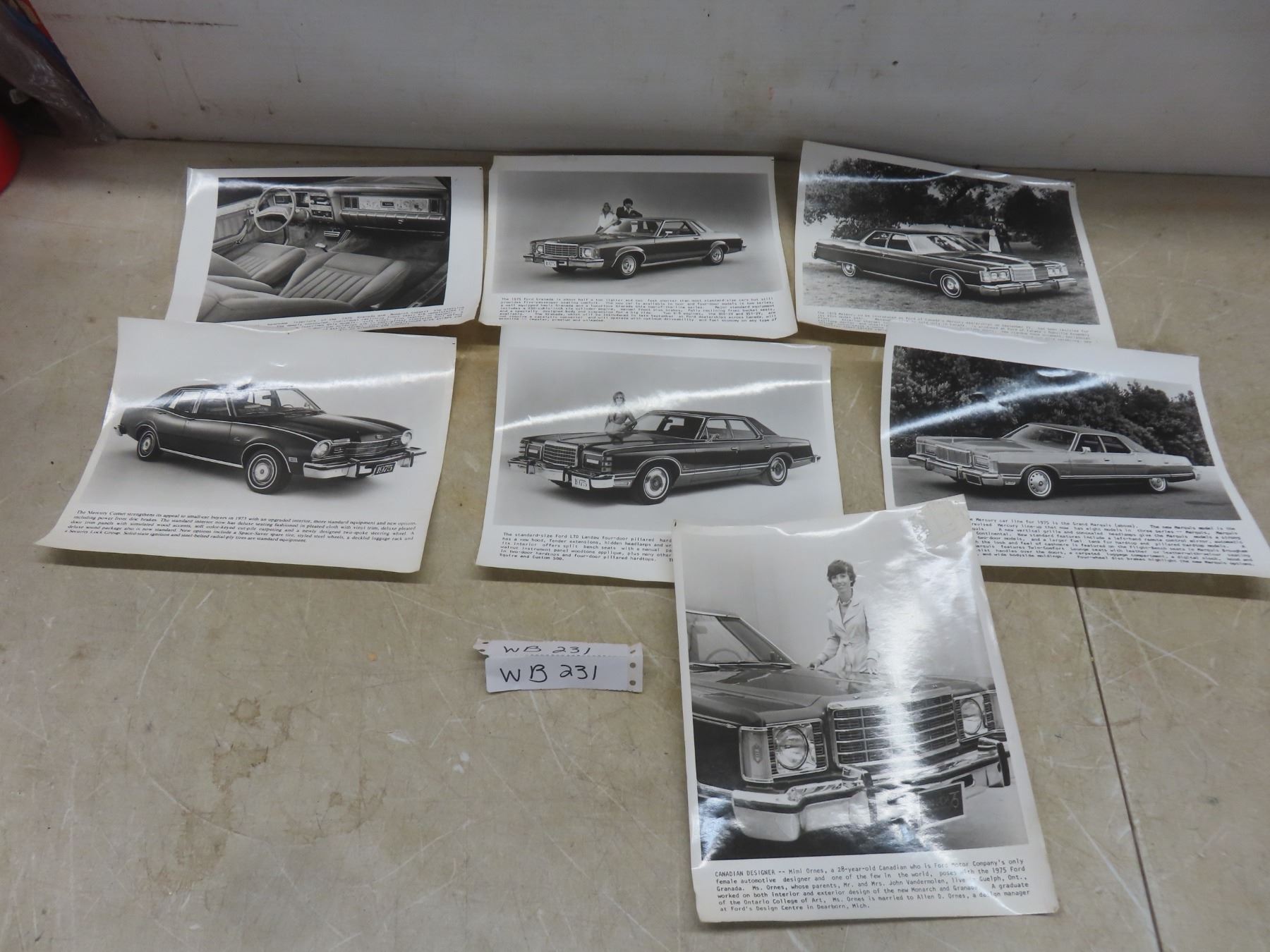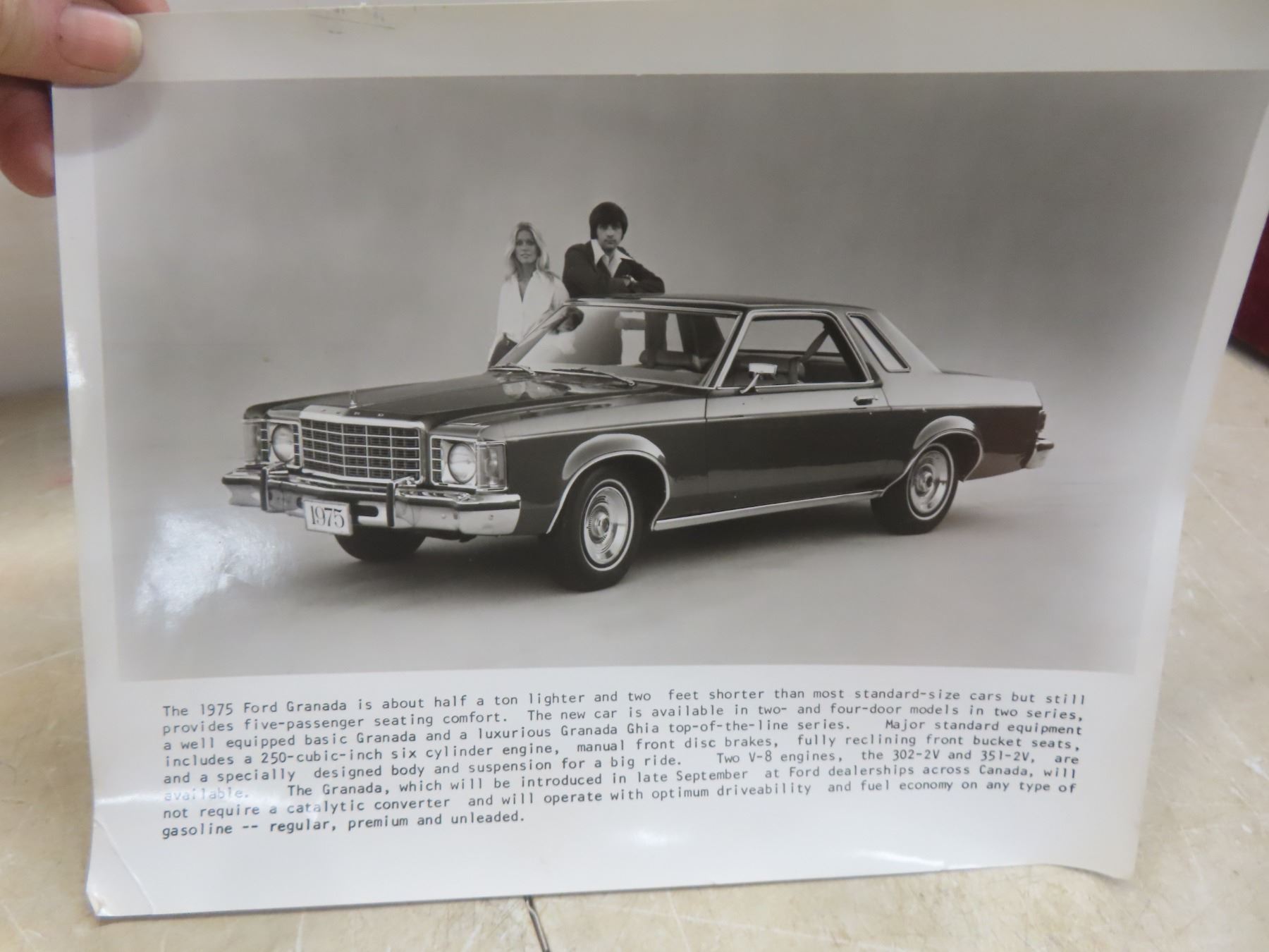 Seven 1975 Ford Dealership Promotional Black-and-White Glossy Photos: Granada, Landau, Meteor, Grand Marquis, and Comet, 10" x 8"