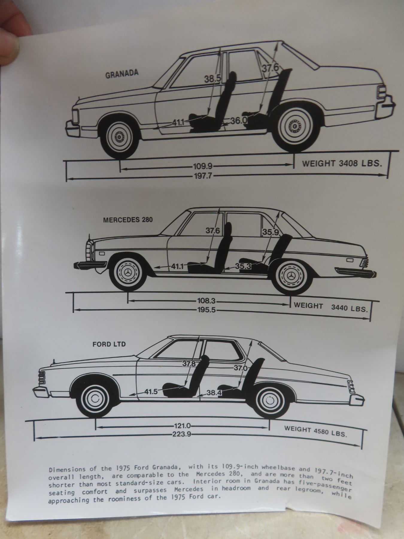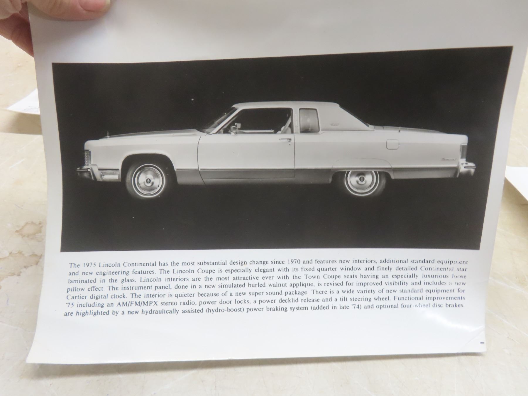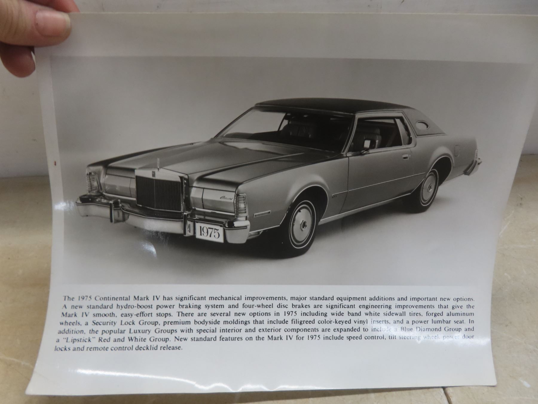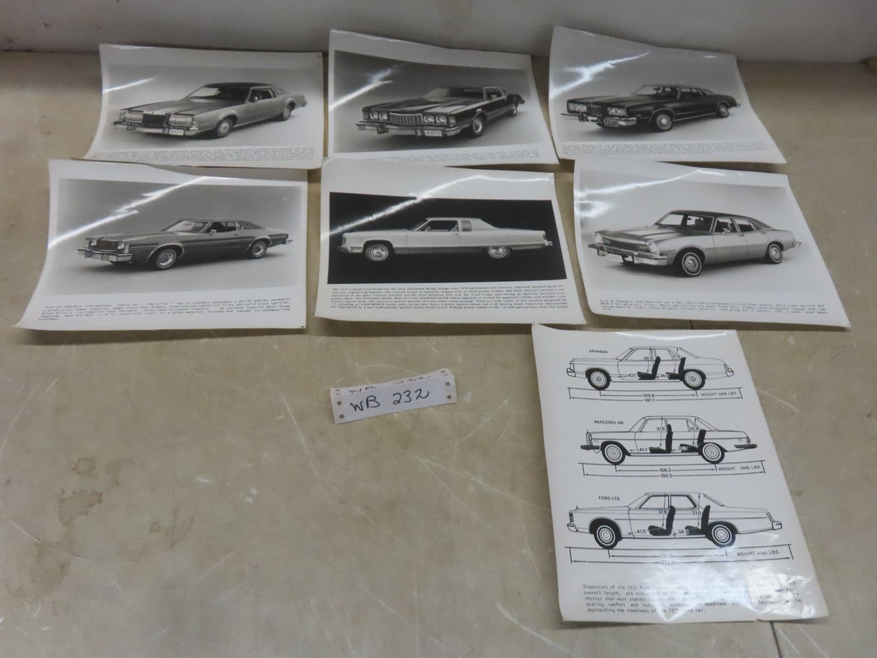 Seven 1975 Ford Dealership Promotional Black-and-White Glossy Photos: Montego, Thunderbird, Continental, Elite, and Maverick, 10" x 8"