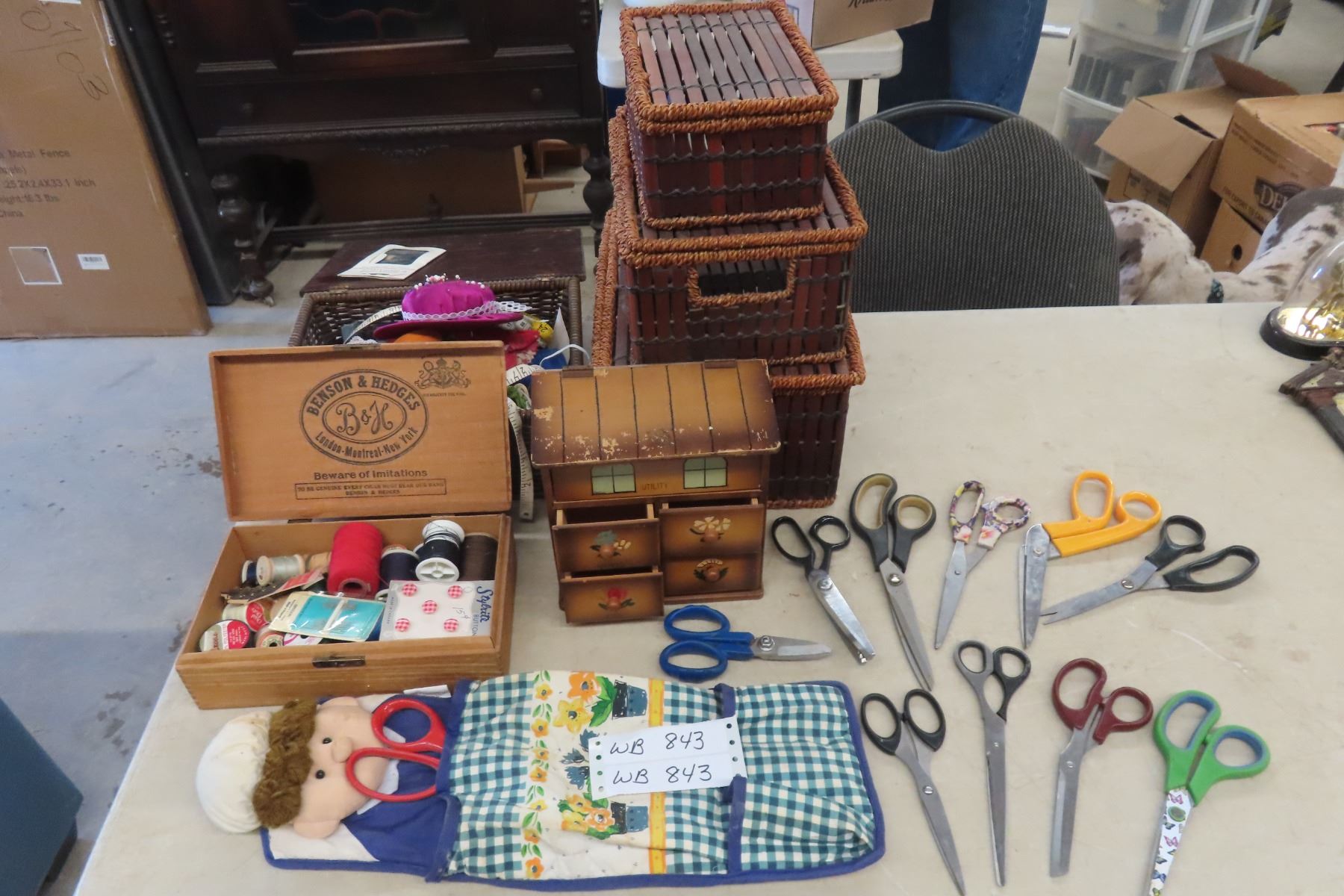 Sewing Pkg Scissors, Notions, 3PC Nesting Boxes and More