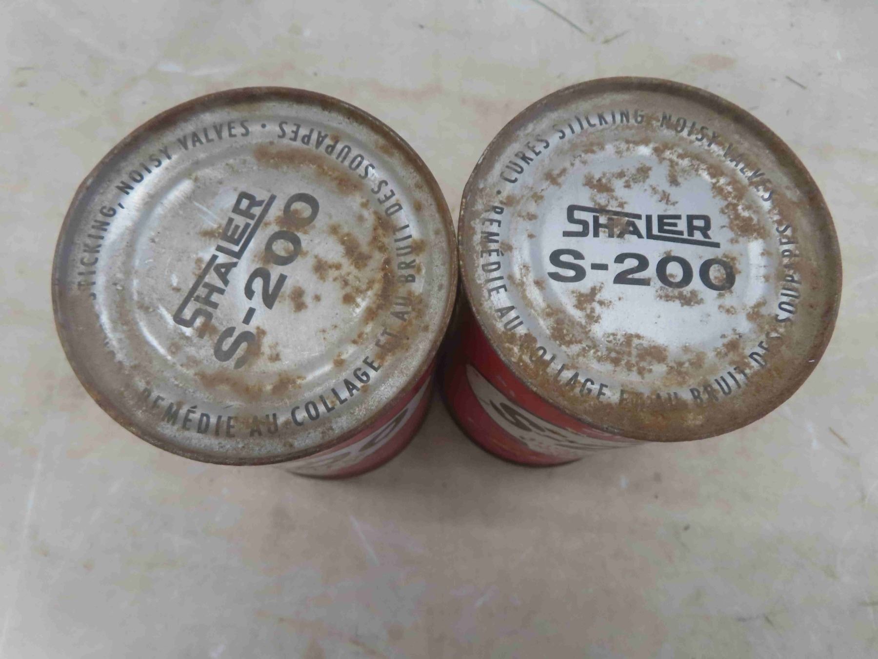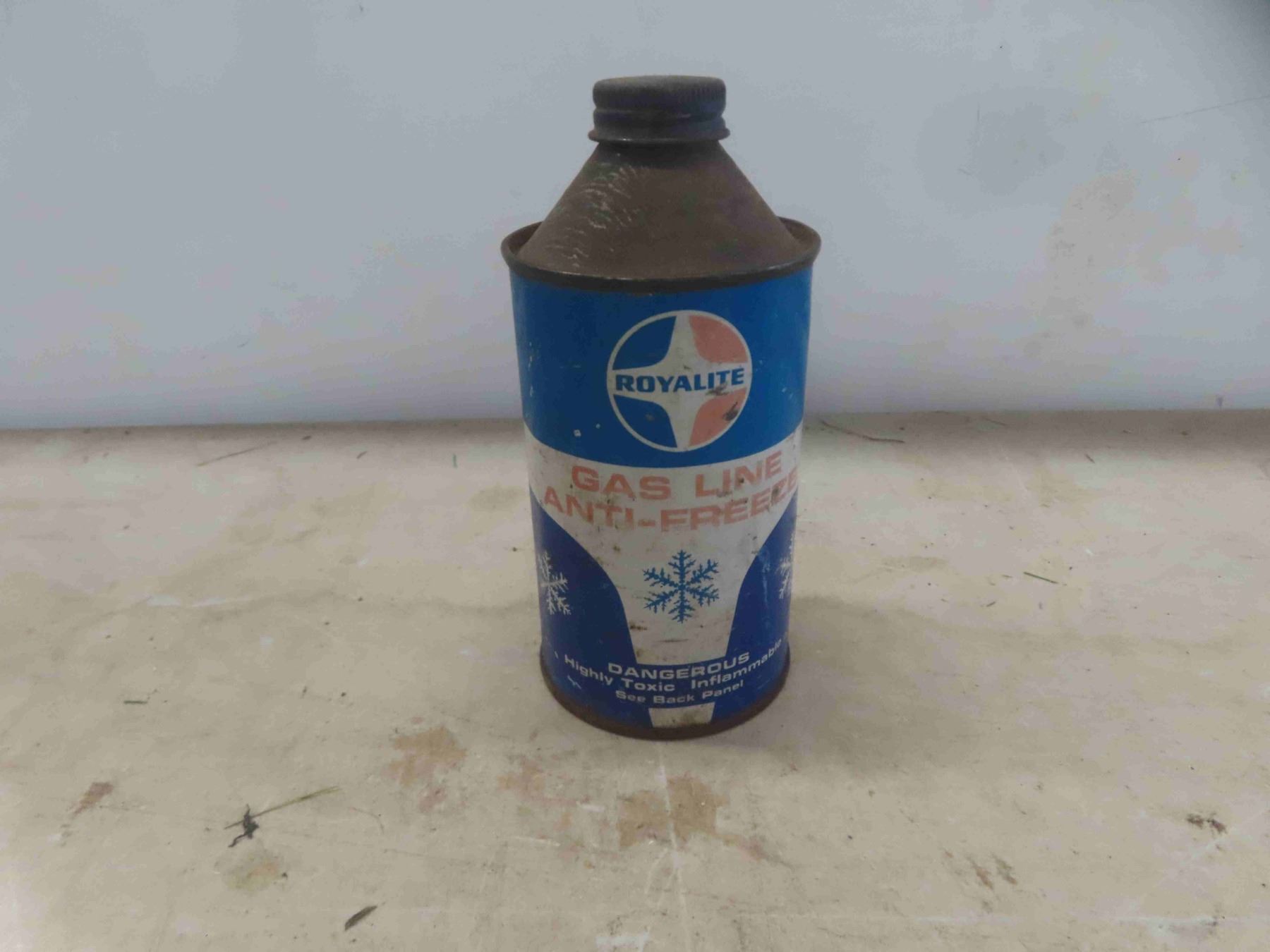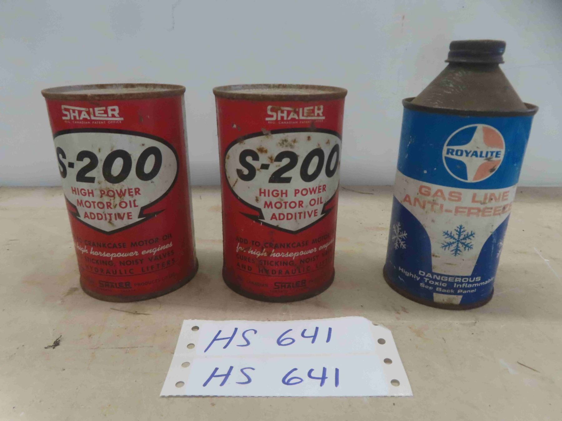 Shaler S-200 Motor Oil Cans(2) w/ Product + Royal Lite Gas Line Antifreeze Cone Top Can