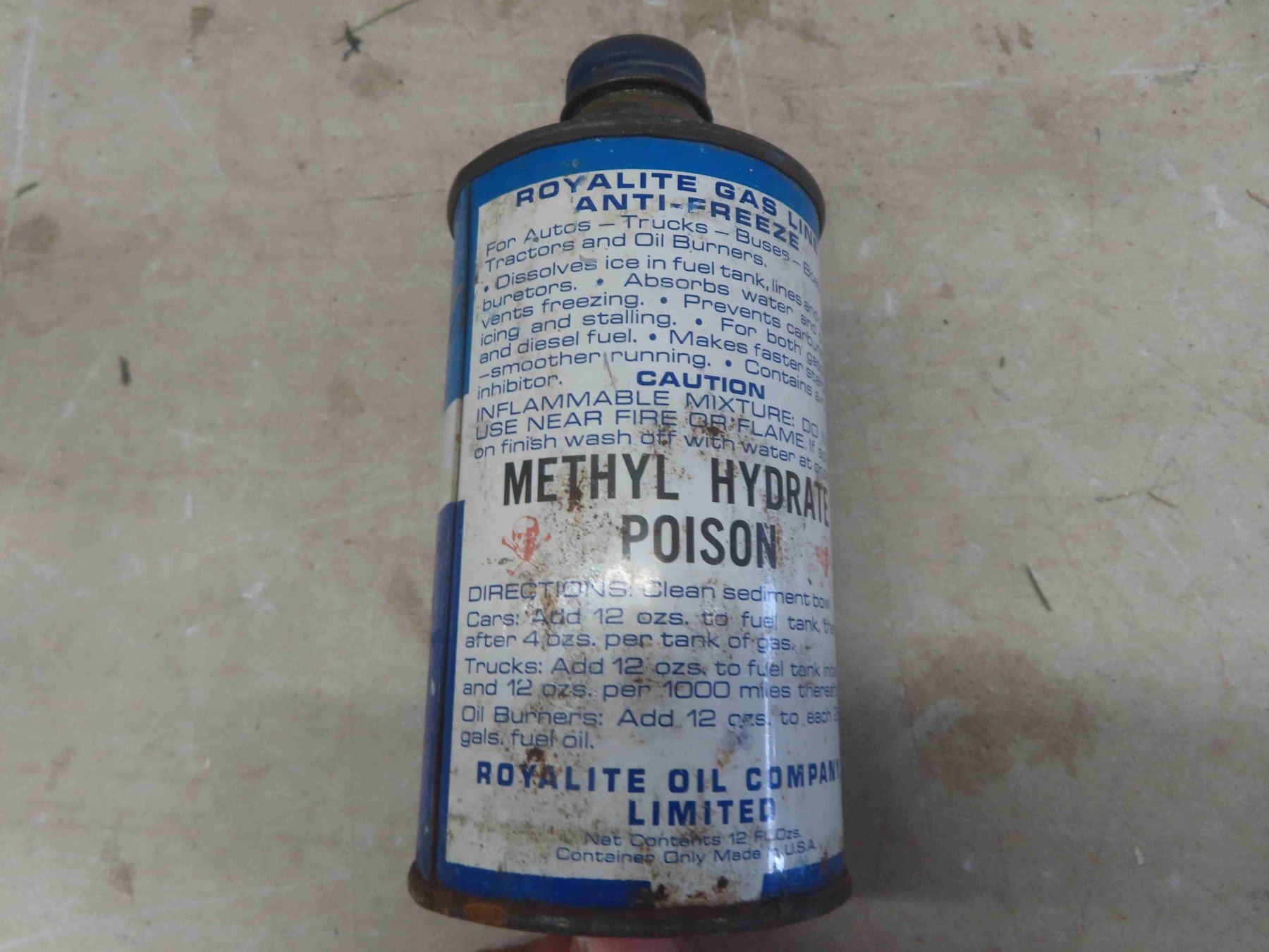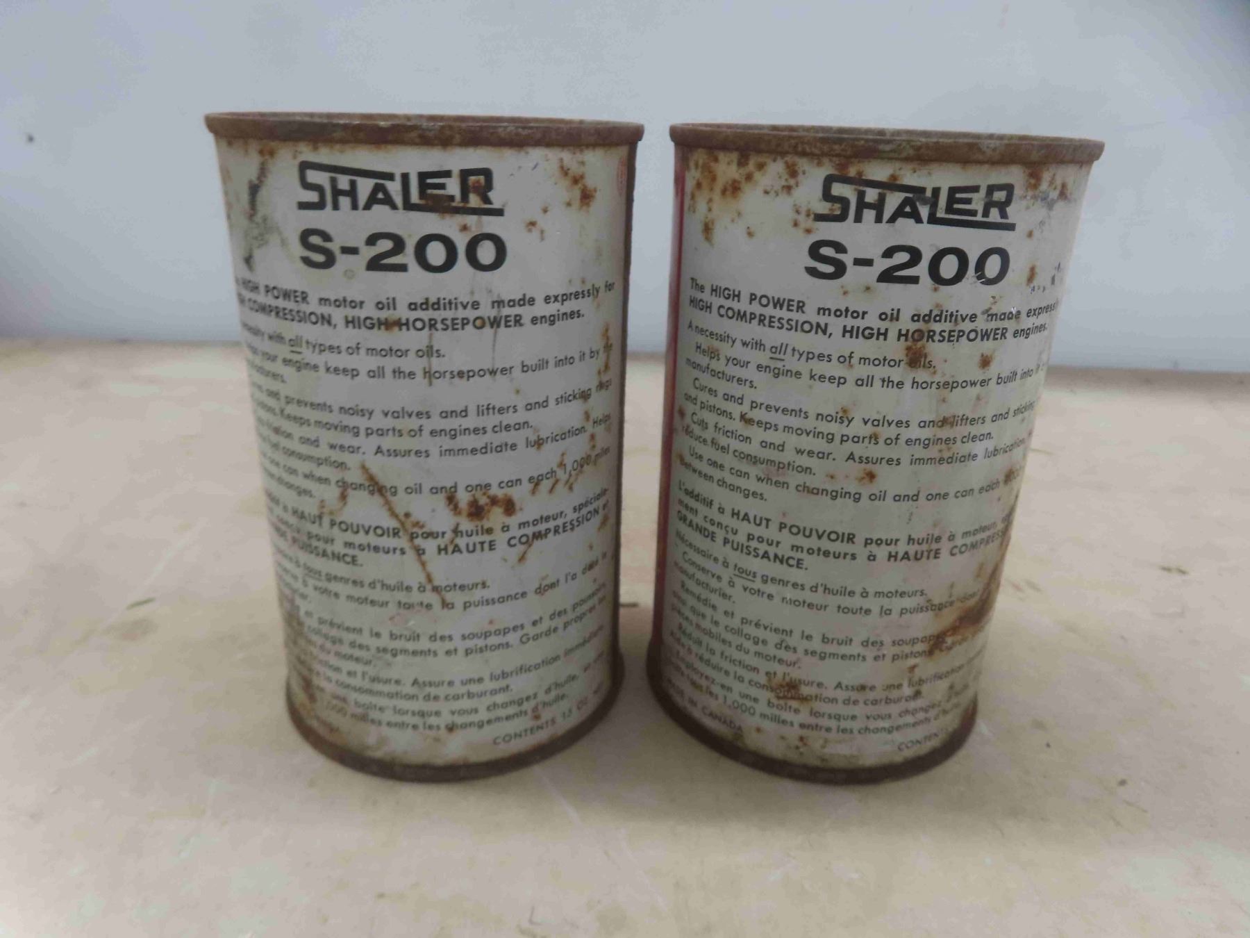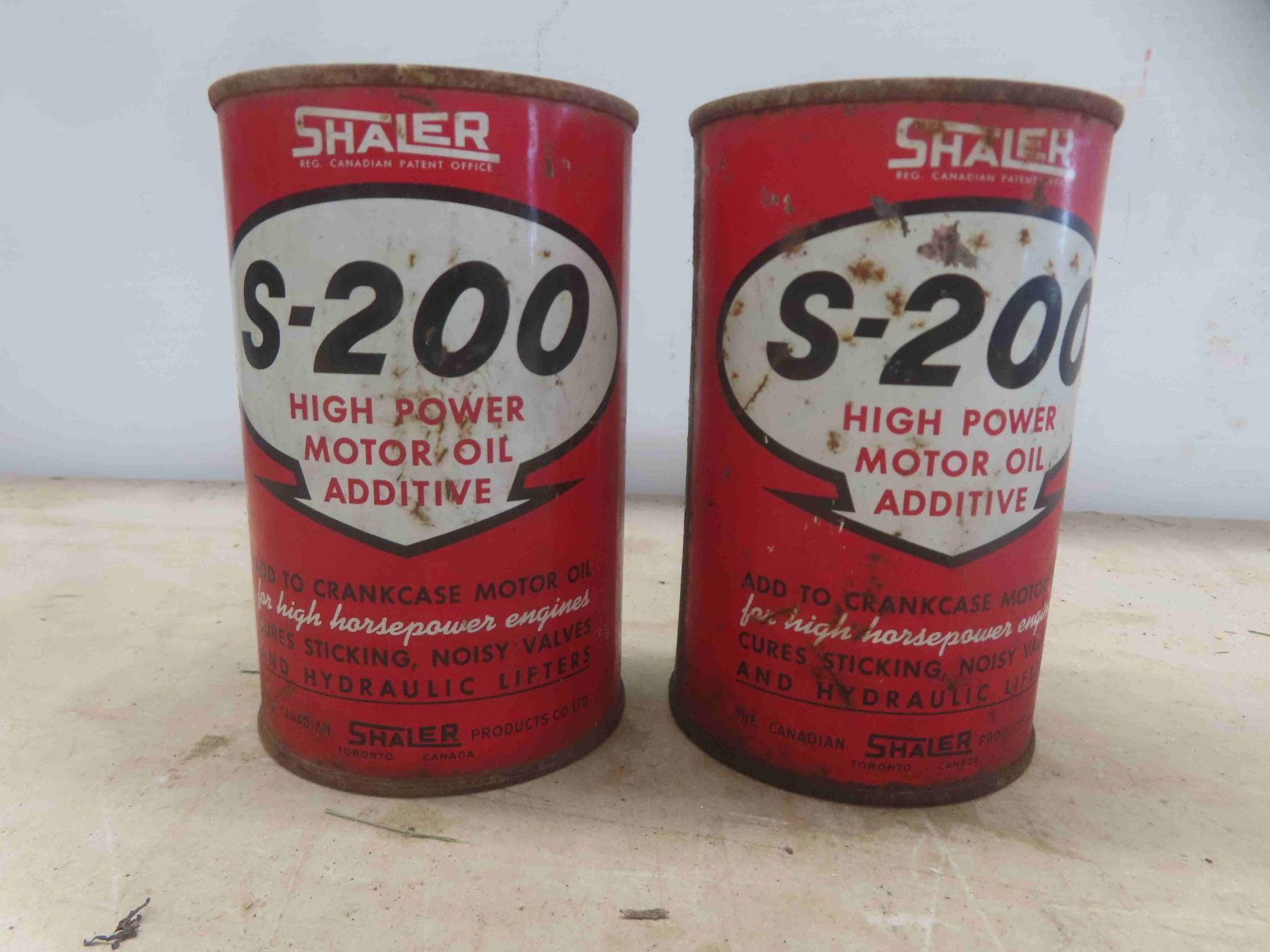 Shaler S-200 Motor Oil Cans(2) w/ Product + Royal Lite Gas Line Antifreeze Cone Top Can
