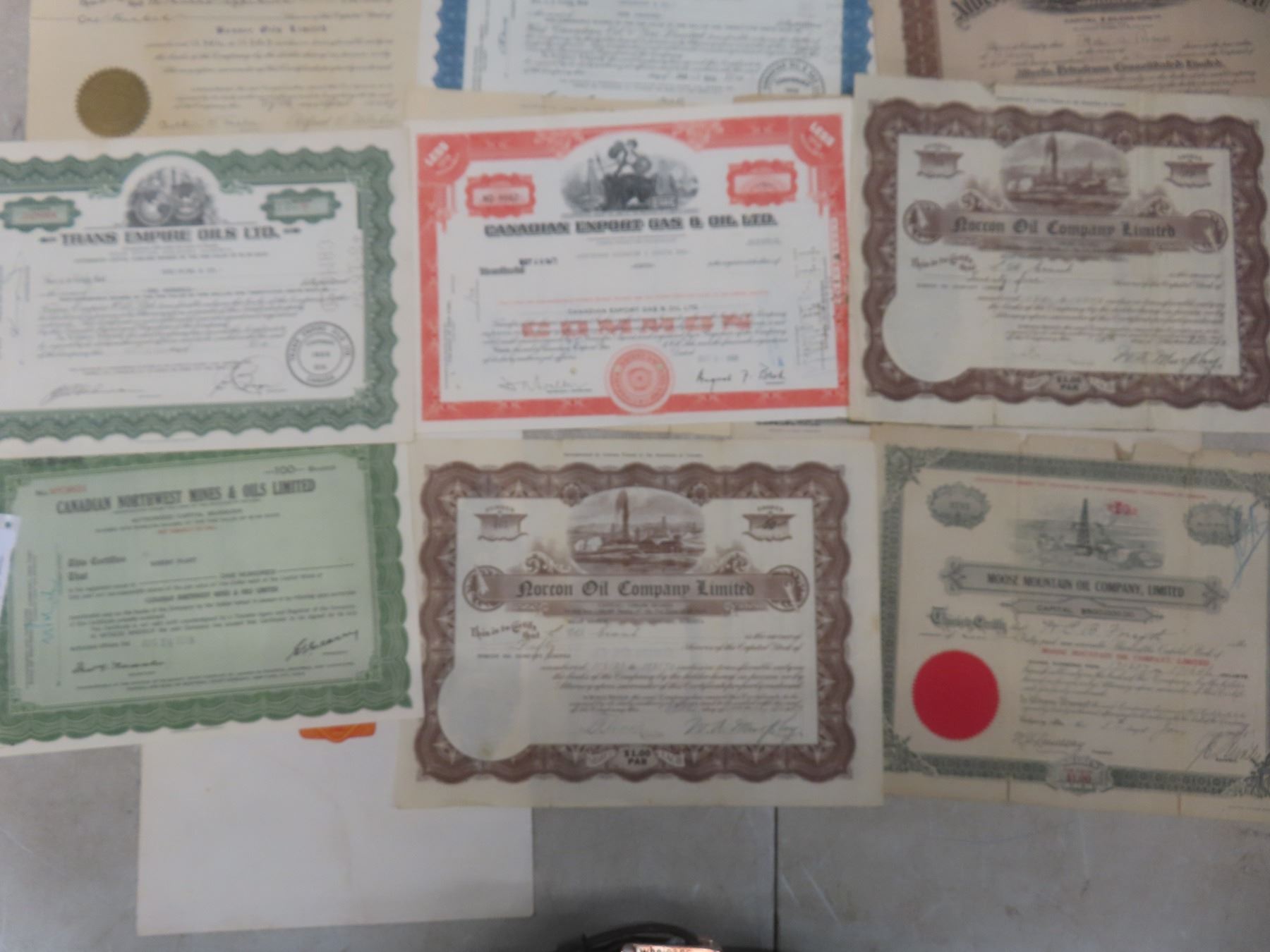 Share Certificates Canadian Export Gas, Transempire Oils, Banner Oils