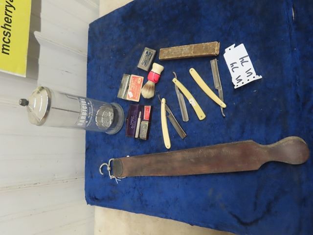Shaving ITems, 3 Straight Blades, Valet Razor w Case, Shaving Brush, Strap, Barber's Comb Disinfectant Jar Plus More!