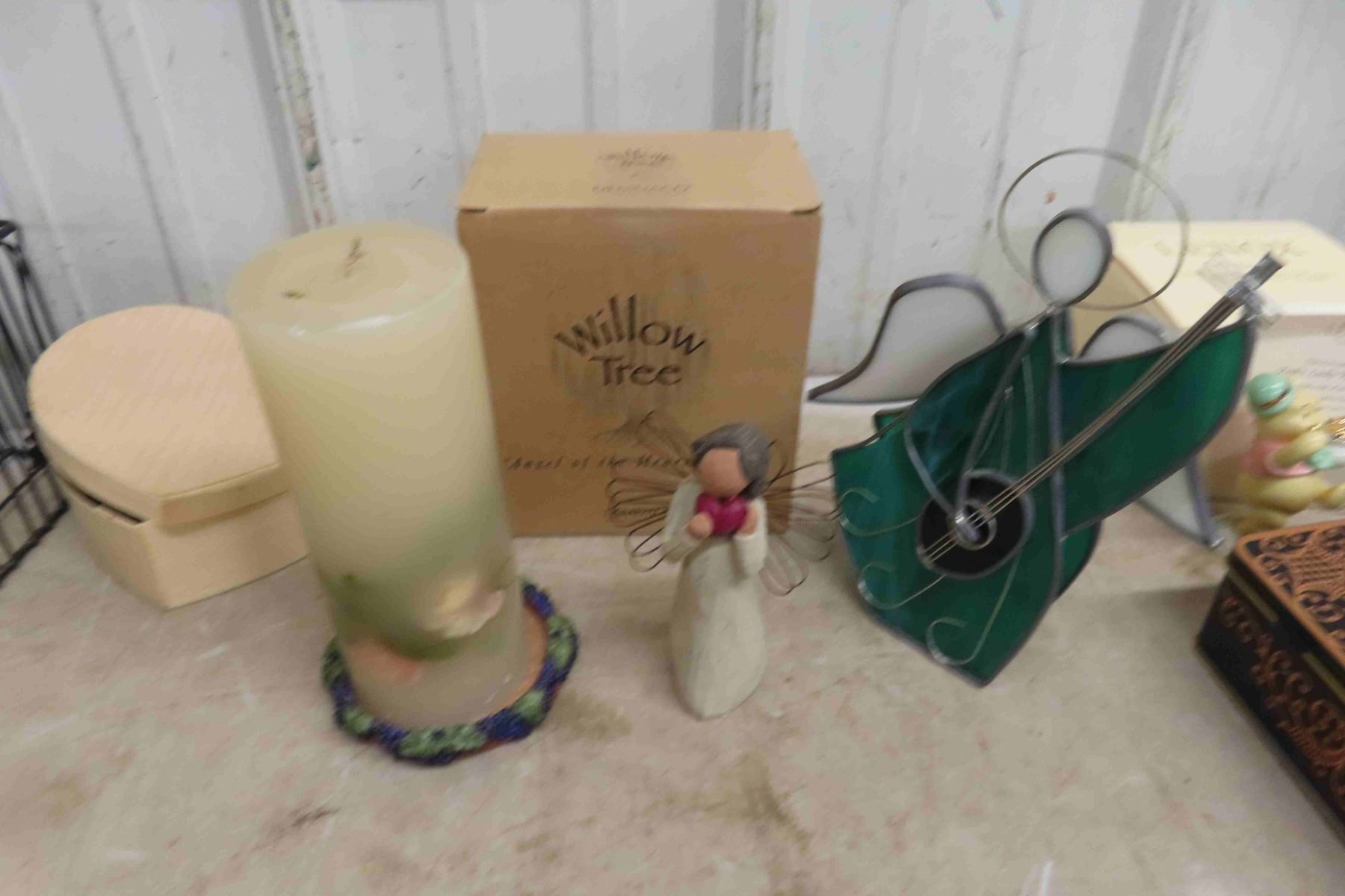 Shelf Décor: Willow Tree, Stained Glass Angel, Clock +