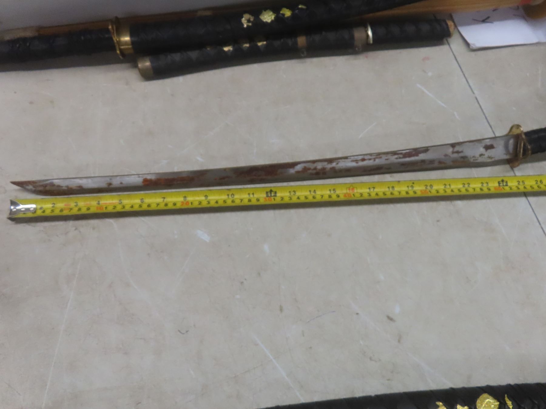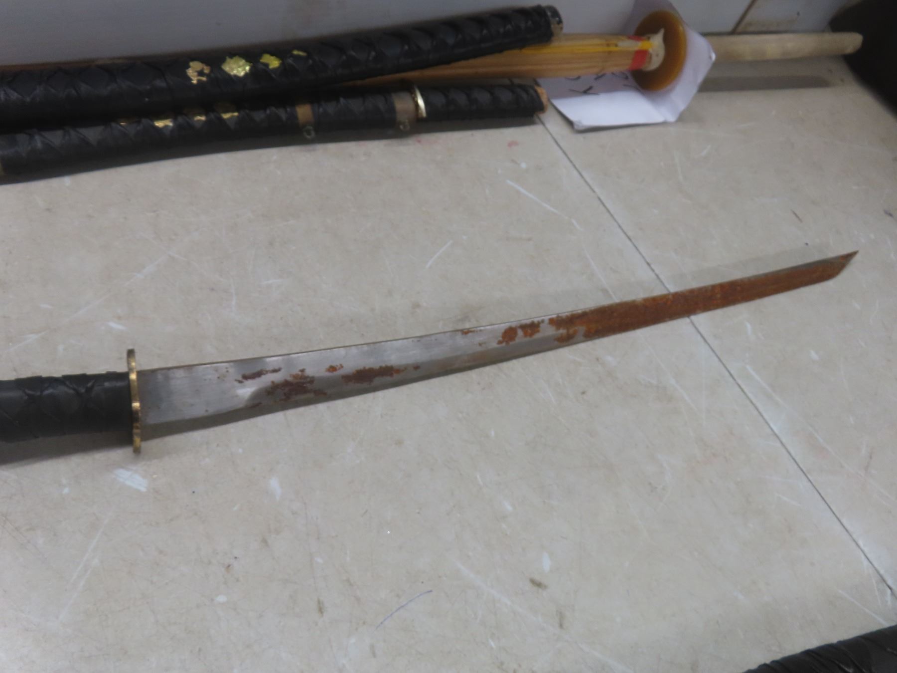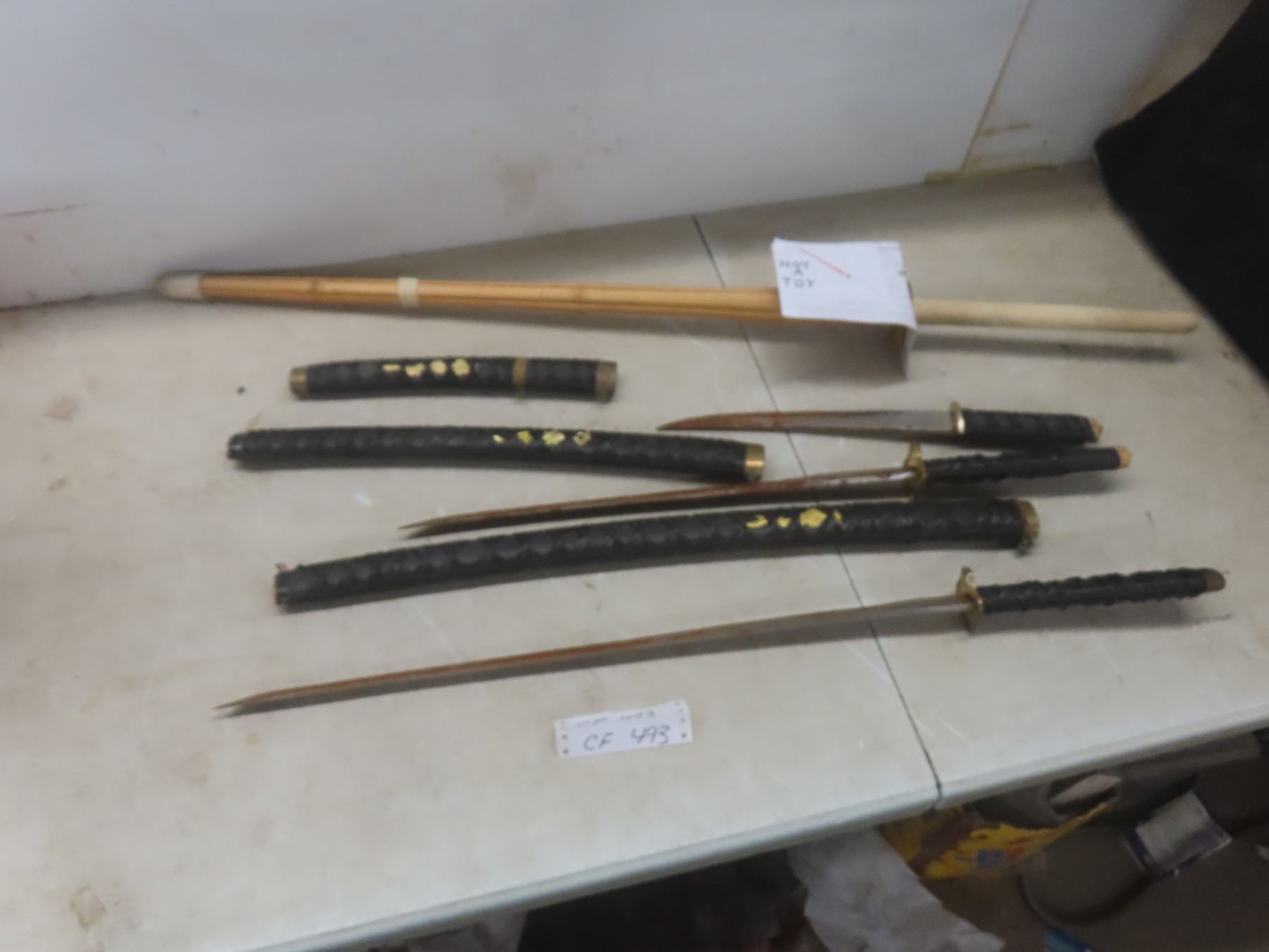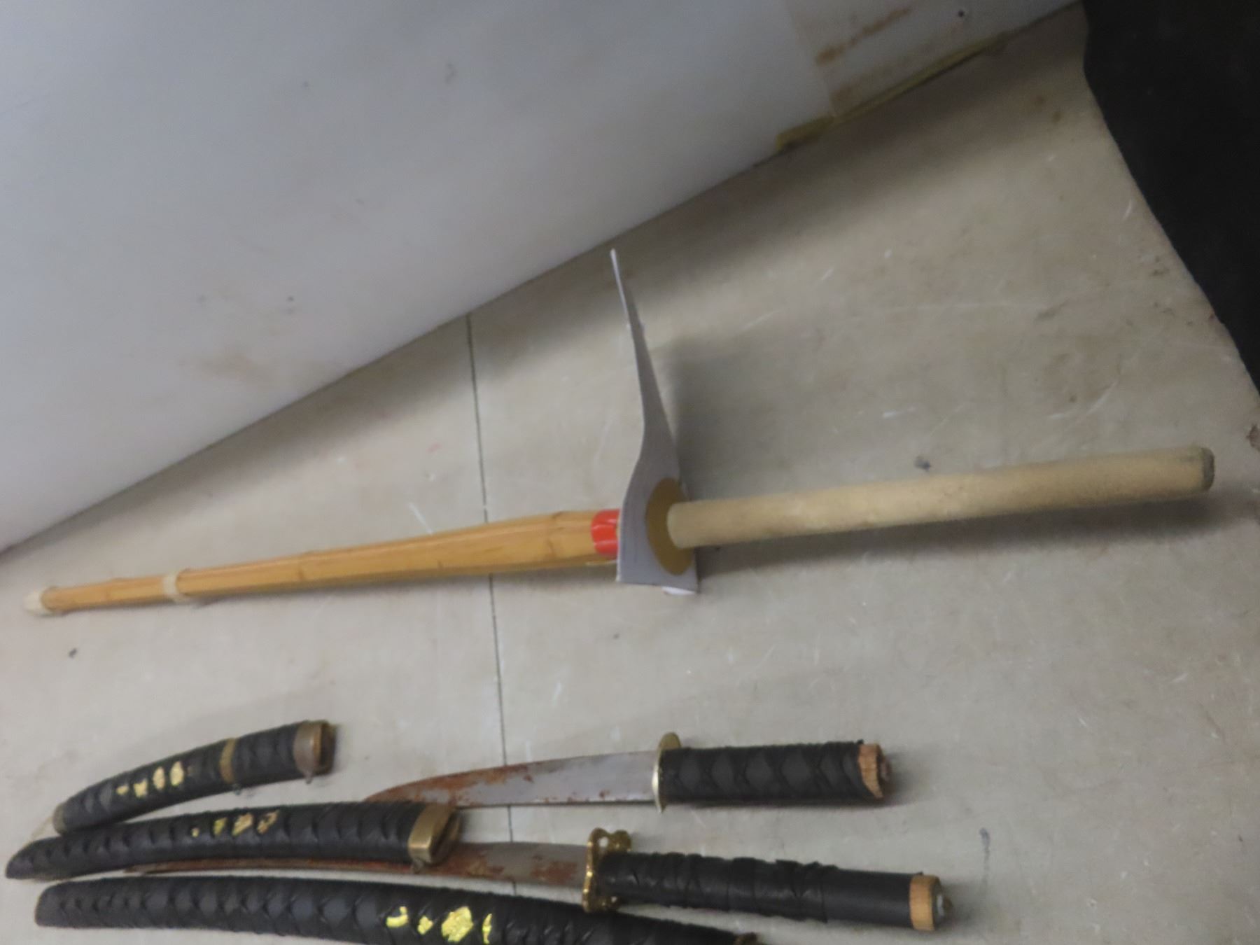 Shinai Bamboo Sword and 3 Swords with Sheaths