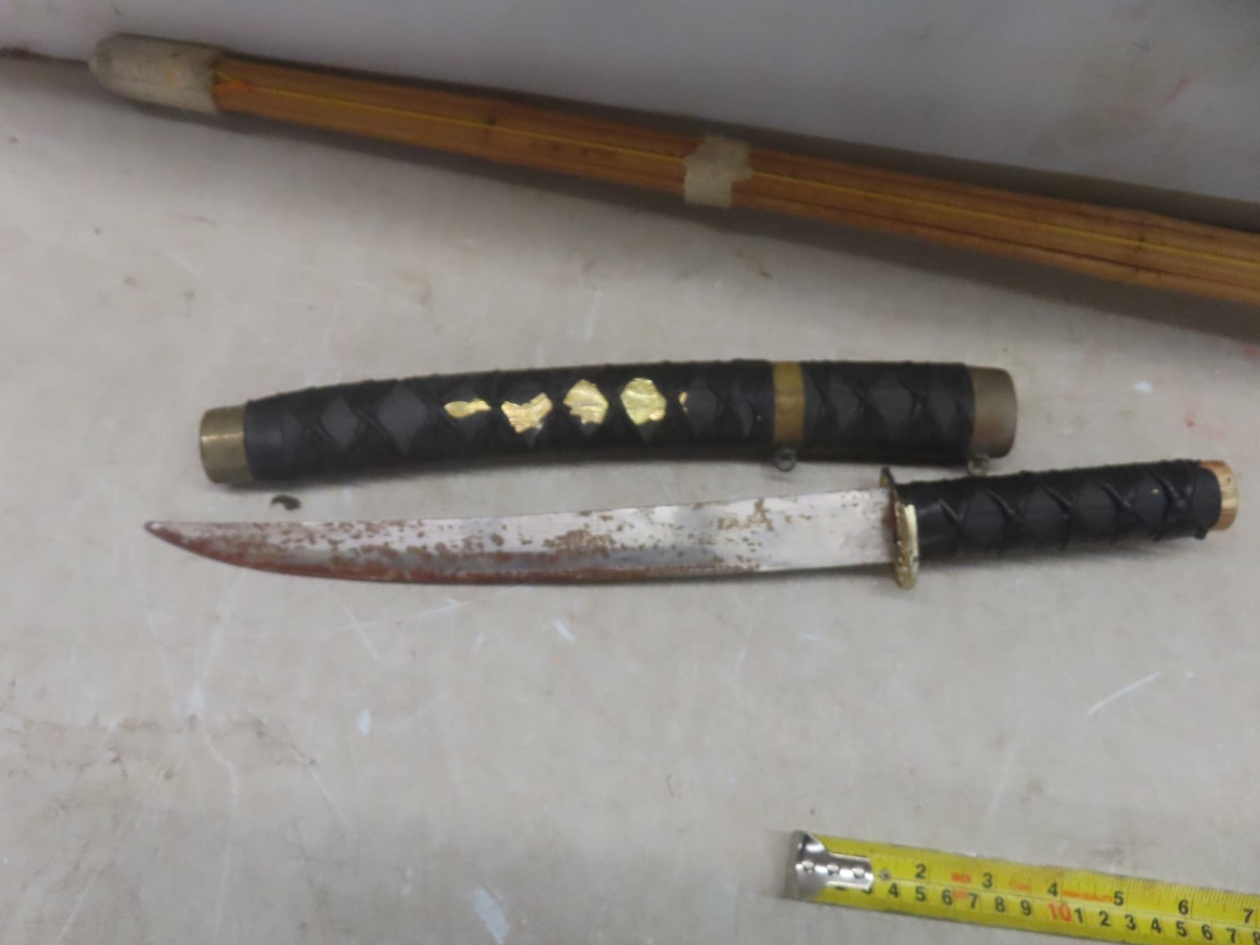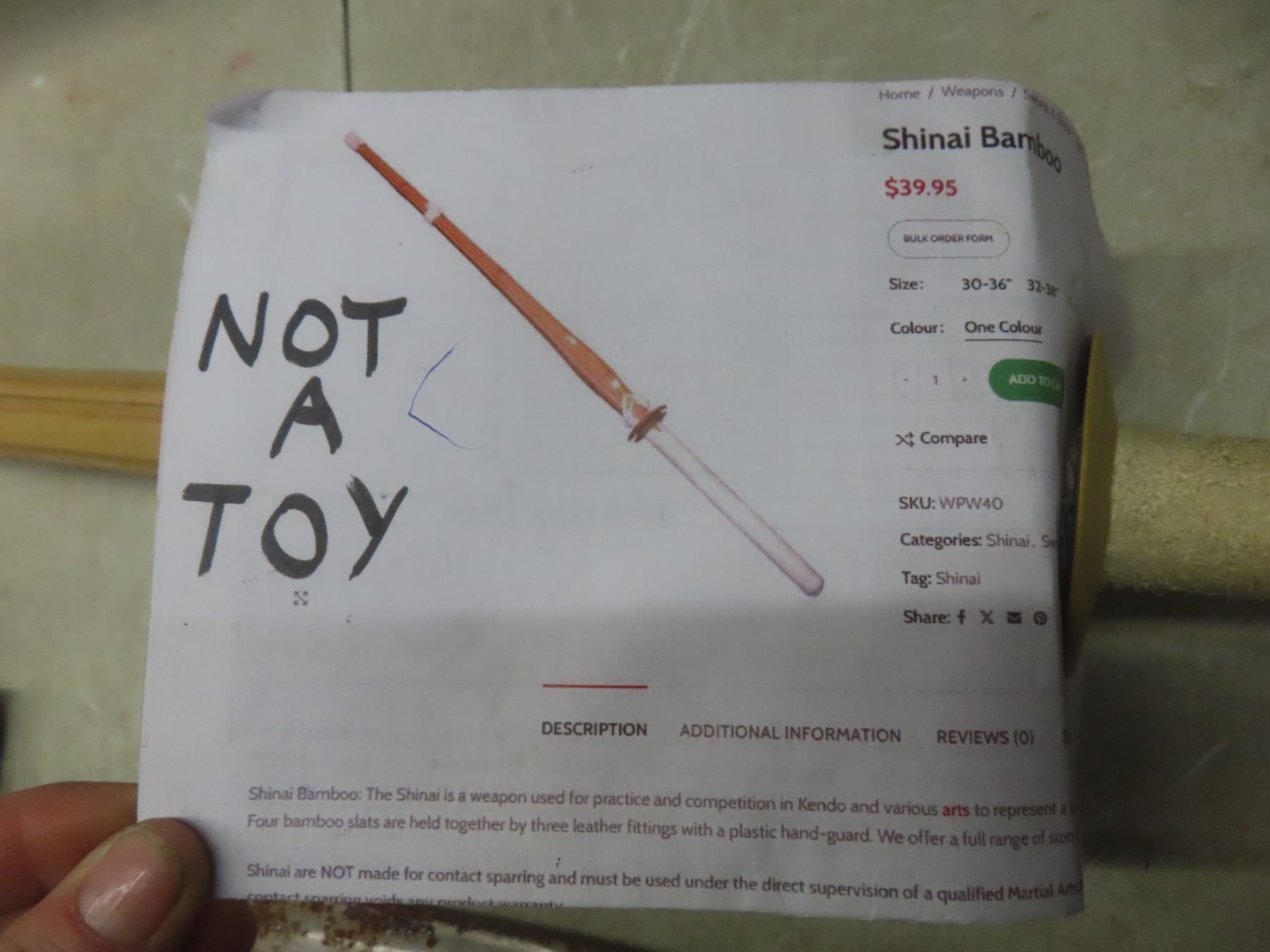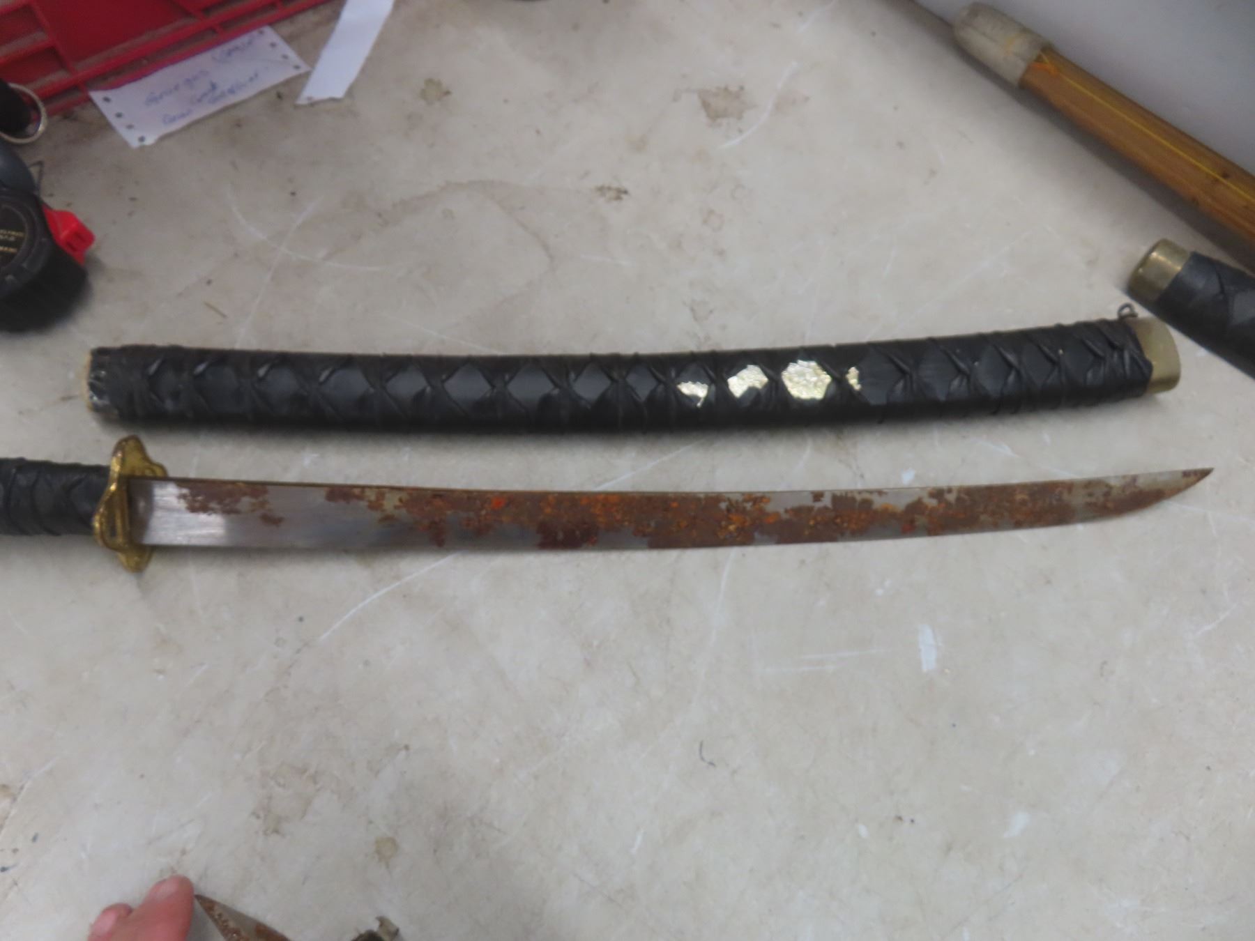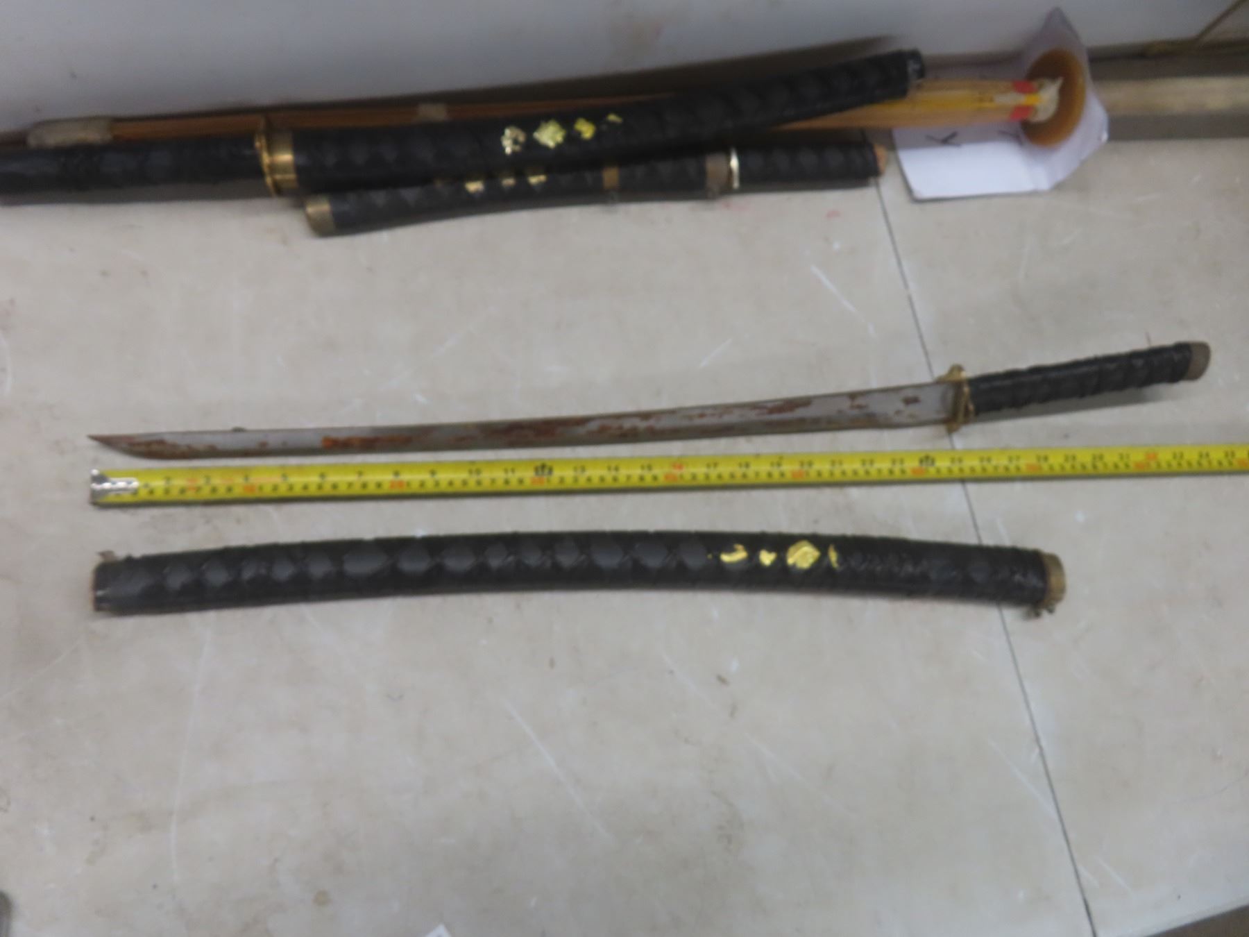 Shinai Bamboo Sword and 3 Swords with Sheaths