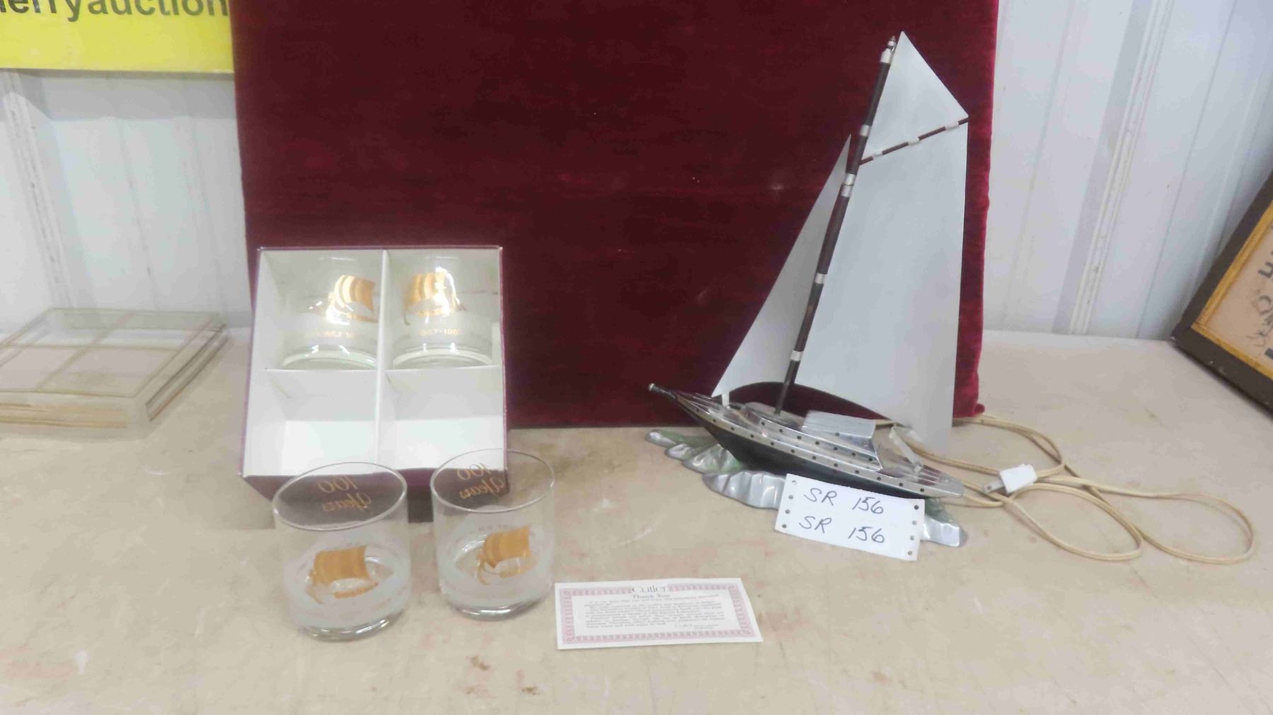 Ship Lamp 11'' x 4'' x 14 1/2'' (Needs Bulb) , 4 Glasses 100 Anniversary