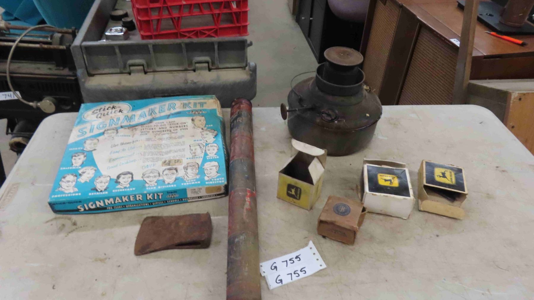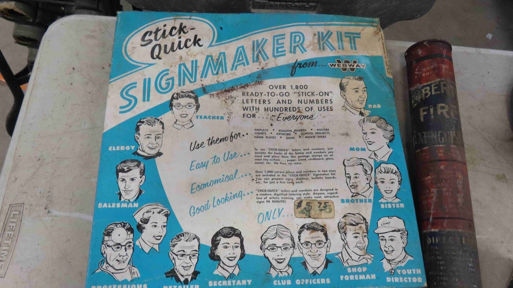 Sign Maker Kit, Axe Head, Fire Extinguisher, Kerosene Lamp - no glass, plus more