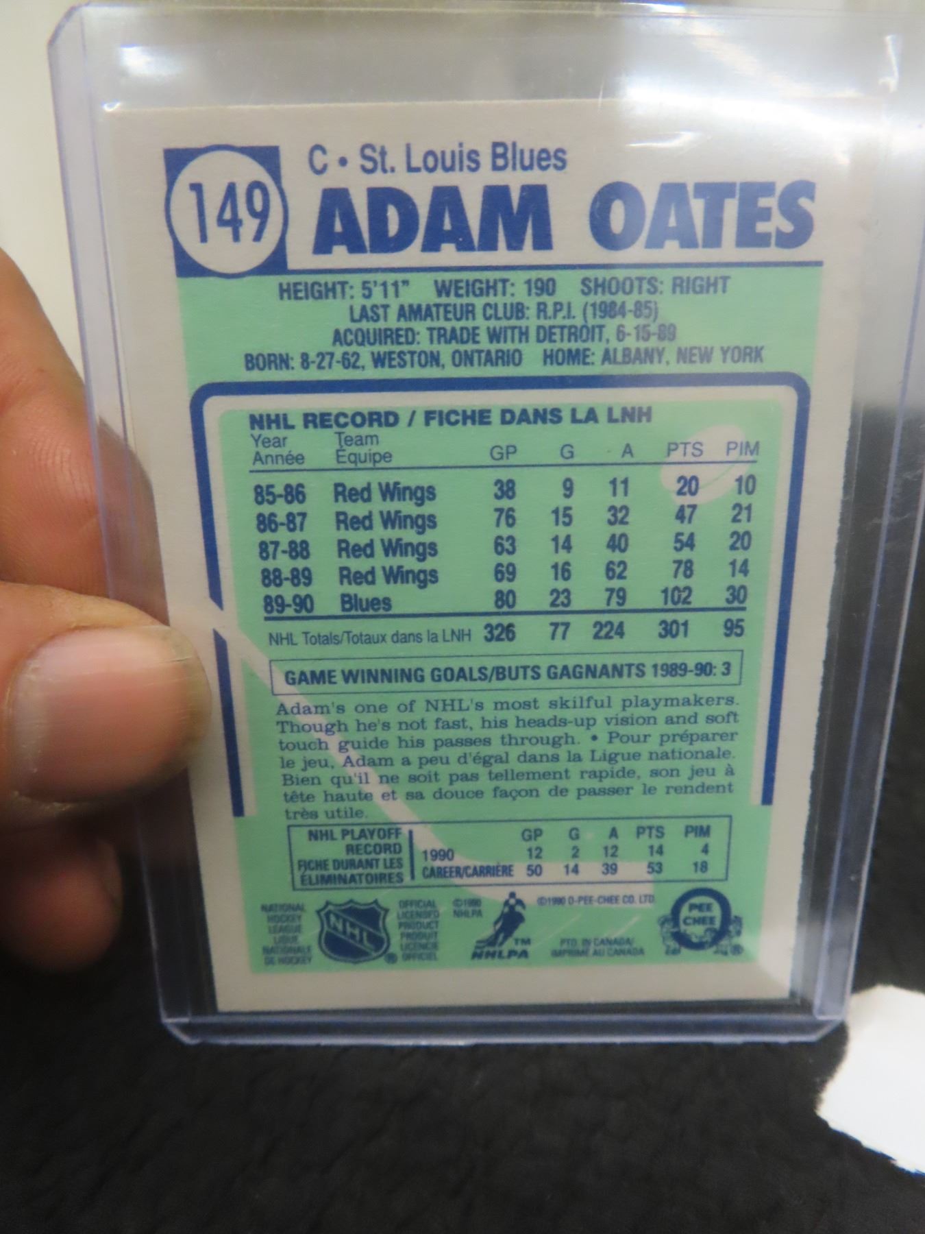 Signed Adam Oates St. Louis Blue Card