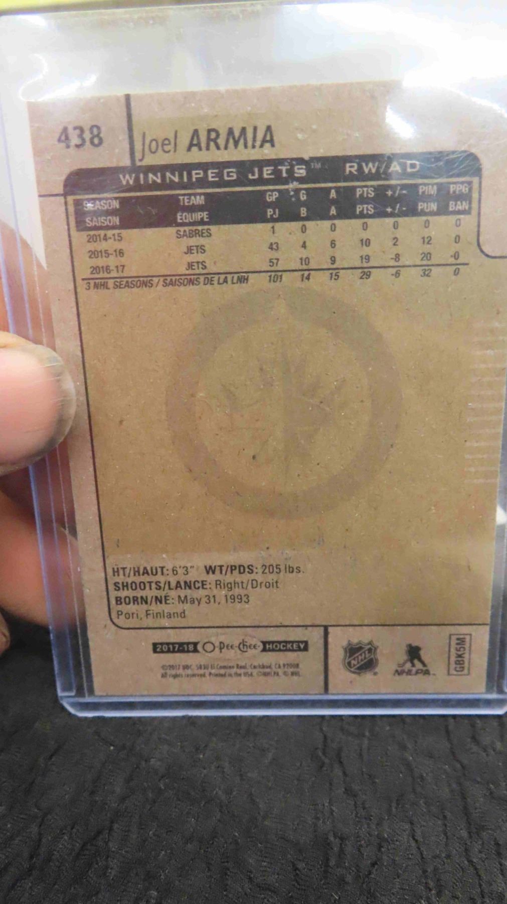 Signed Joel Armia Winnipeg Jets Card