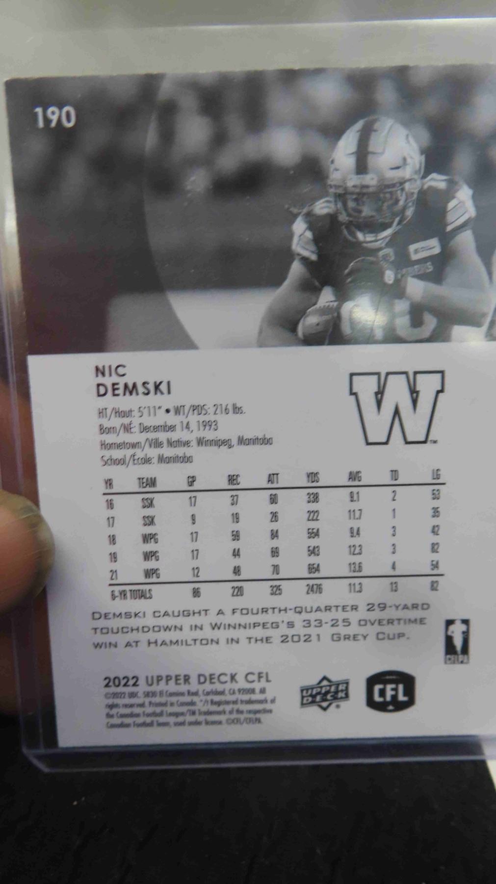 Signed Nic Demski Winnipeg Blue Bombers Card