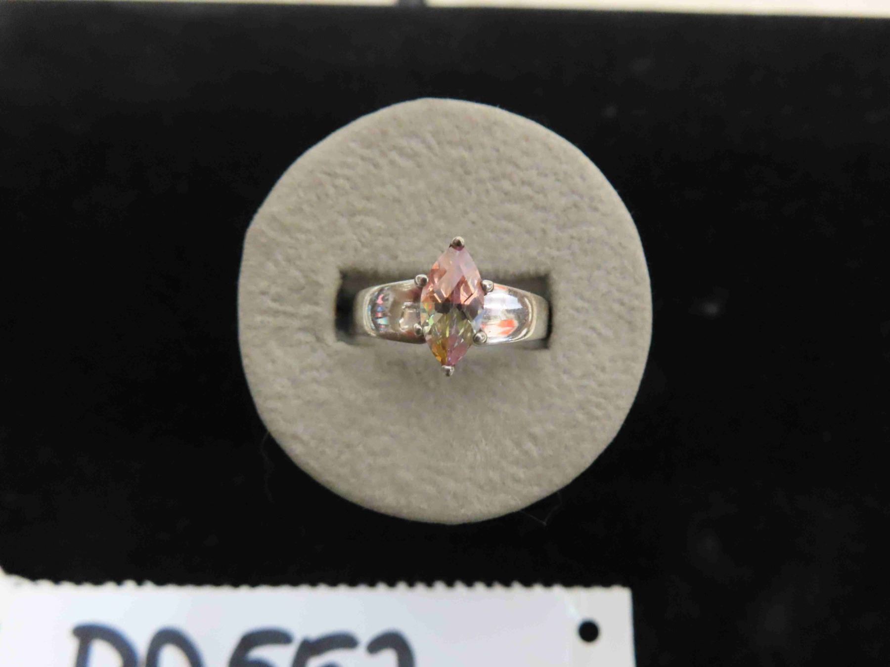 Silver Banded Ring with Stone Marked 925