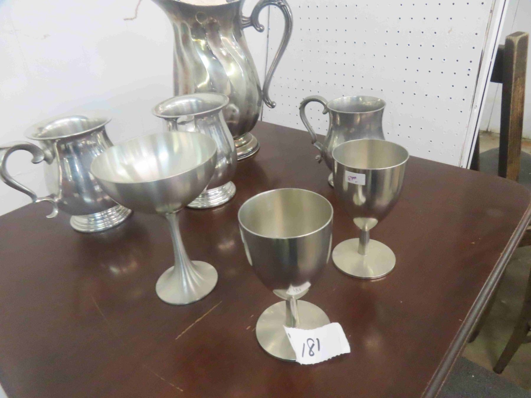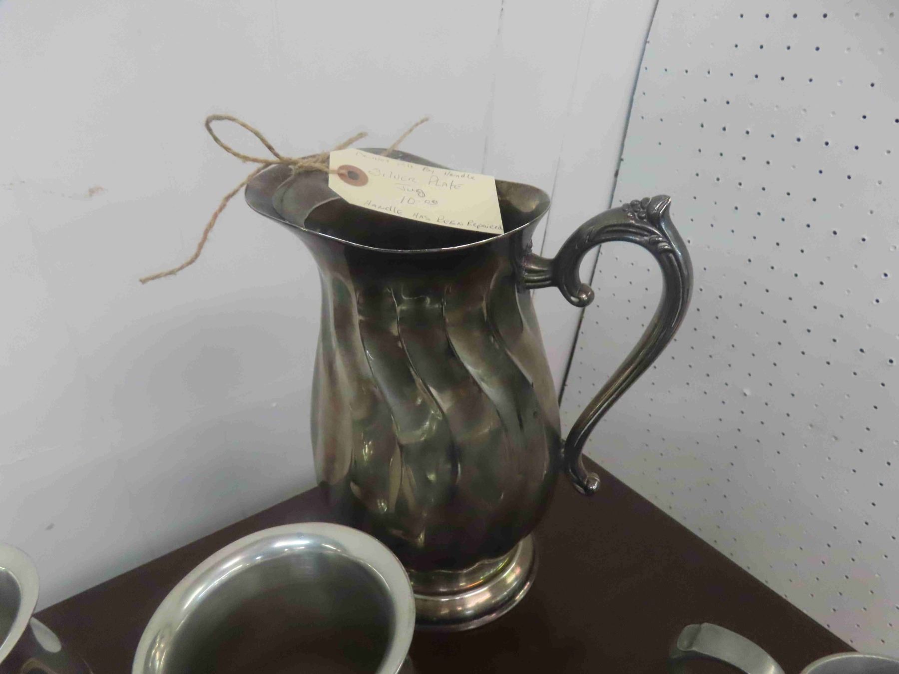 Silver Plated Goblet, Mugs, Pitcher, 7 pcs Total