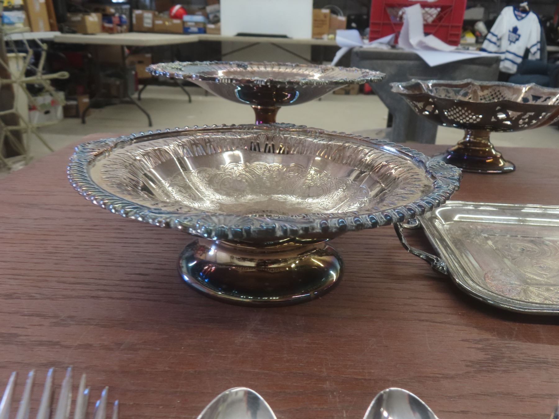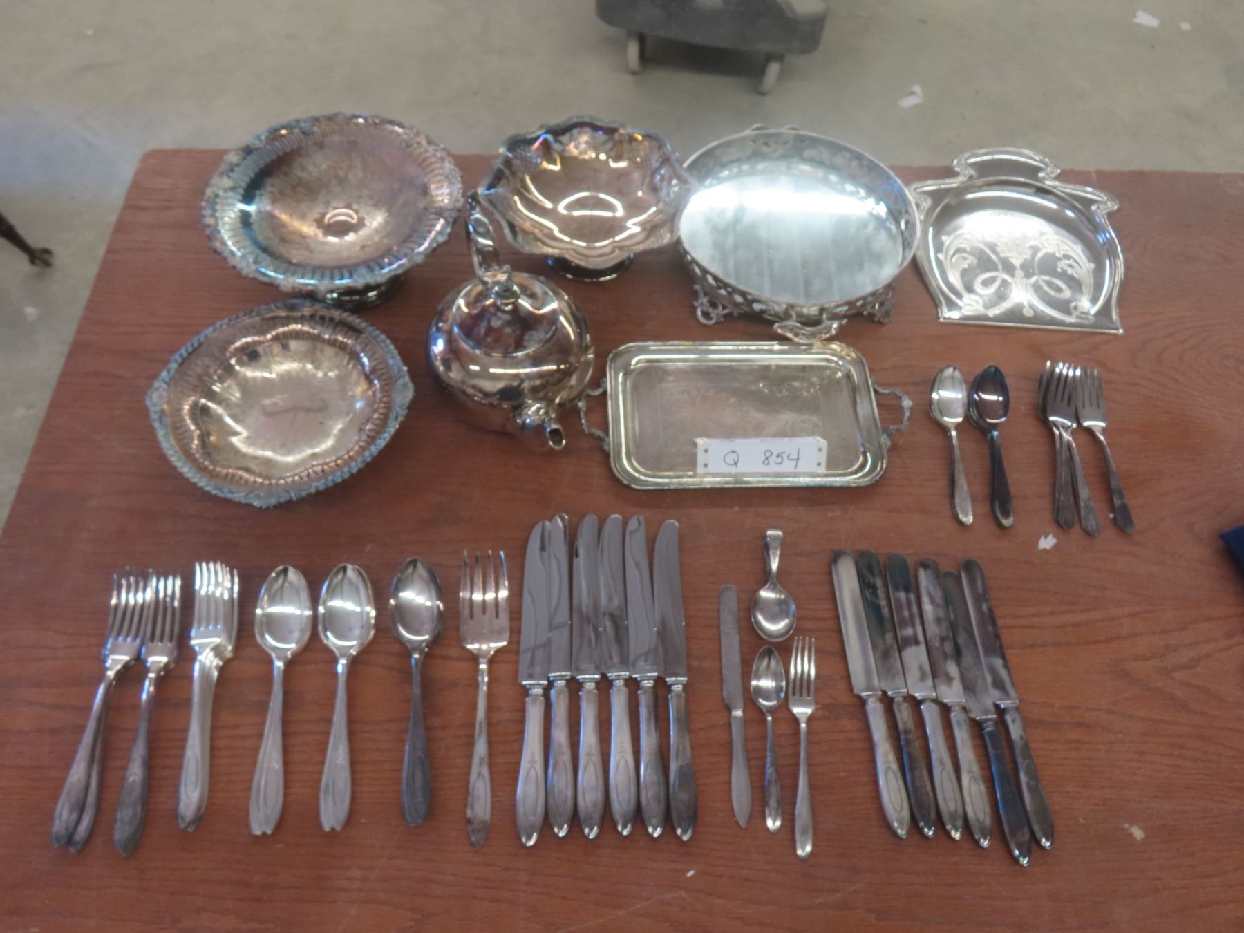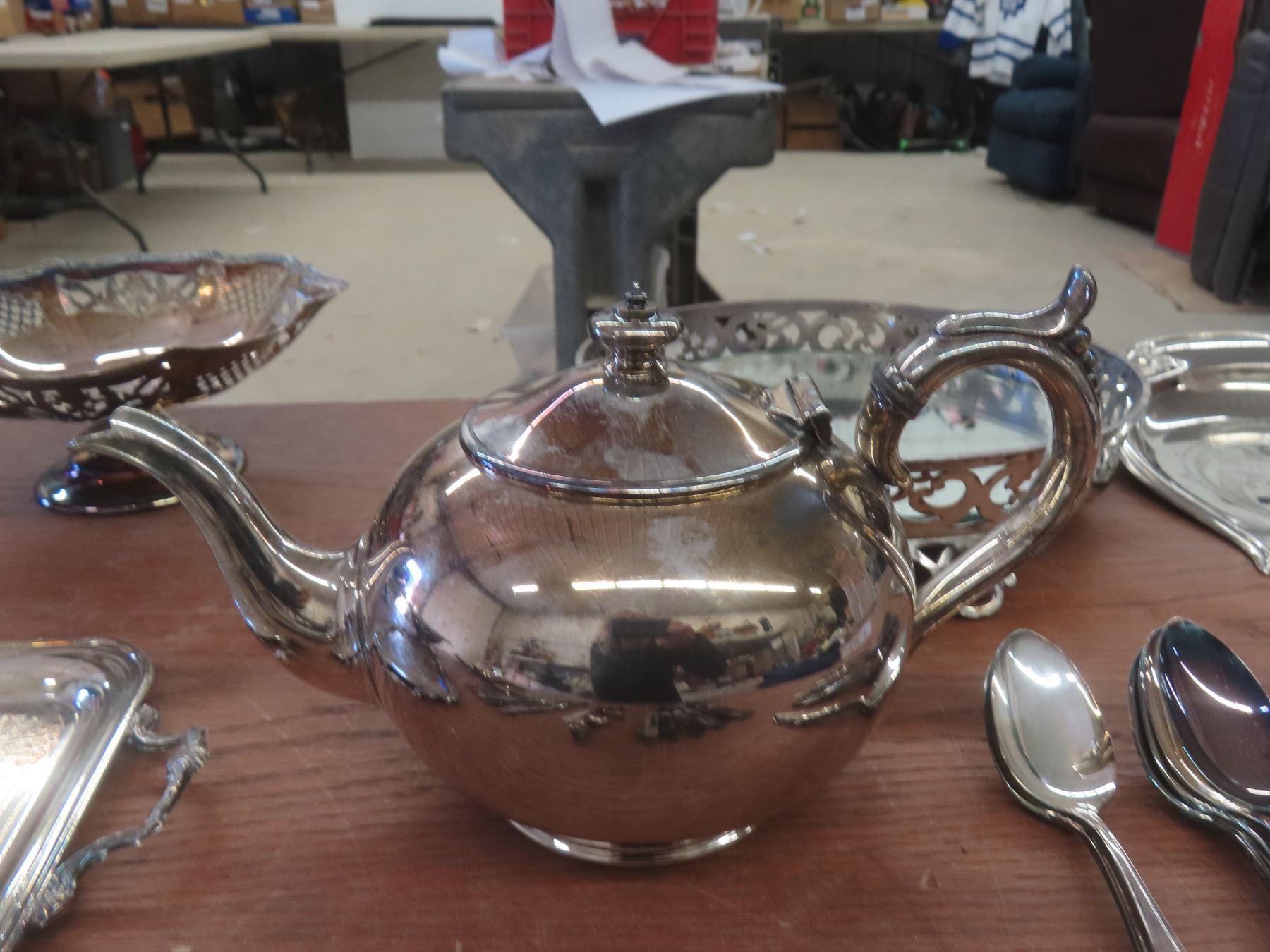 Silver Plated Servingware, Tea Pot + 40+ Pieces Silverware