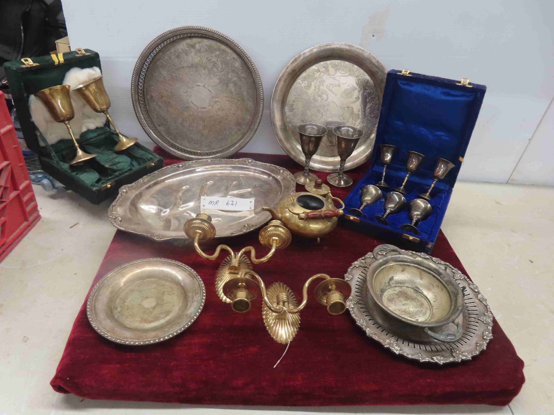 Silver Plated Trays, Goblets, Brass Candle Holder, Tea Pot, Goblets
