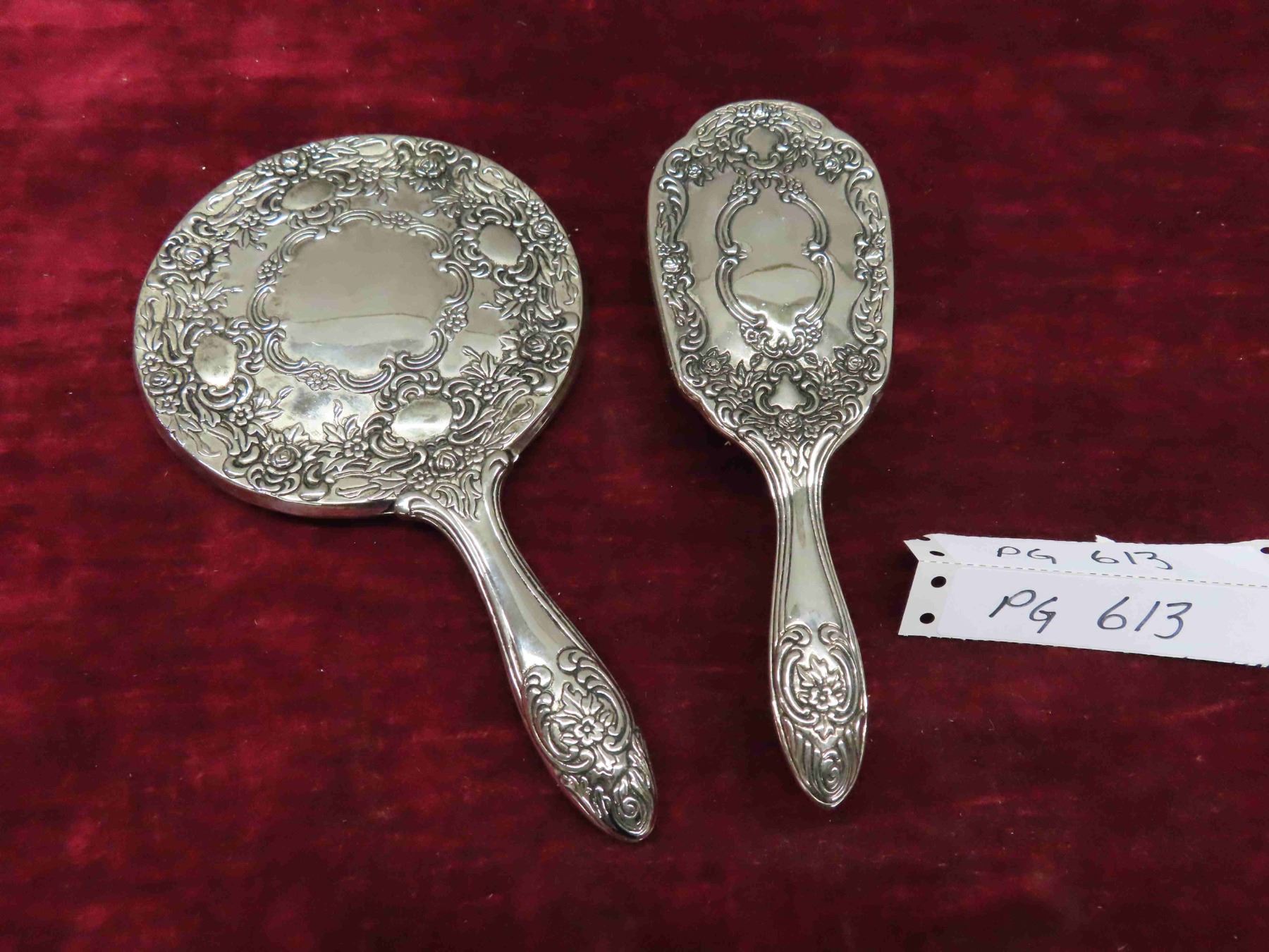 Silver Plated Vanity Mirror + Brush Set (Heavy Weight) Hard Find in This Condition