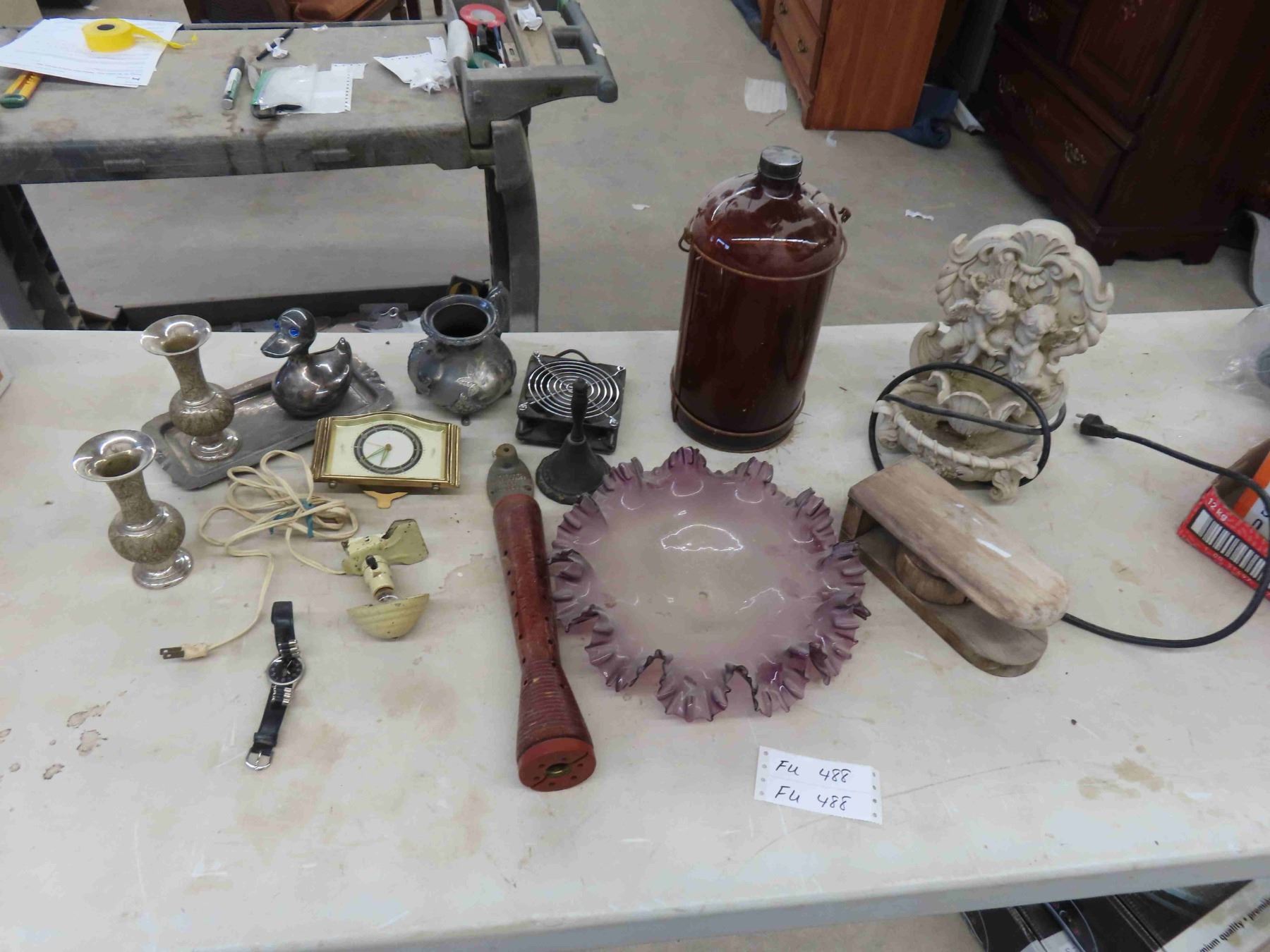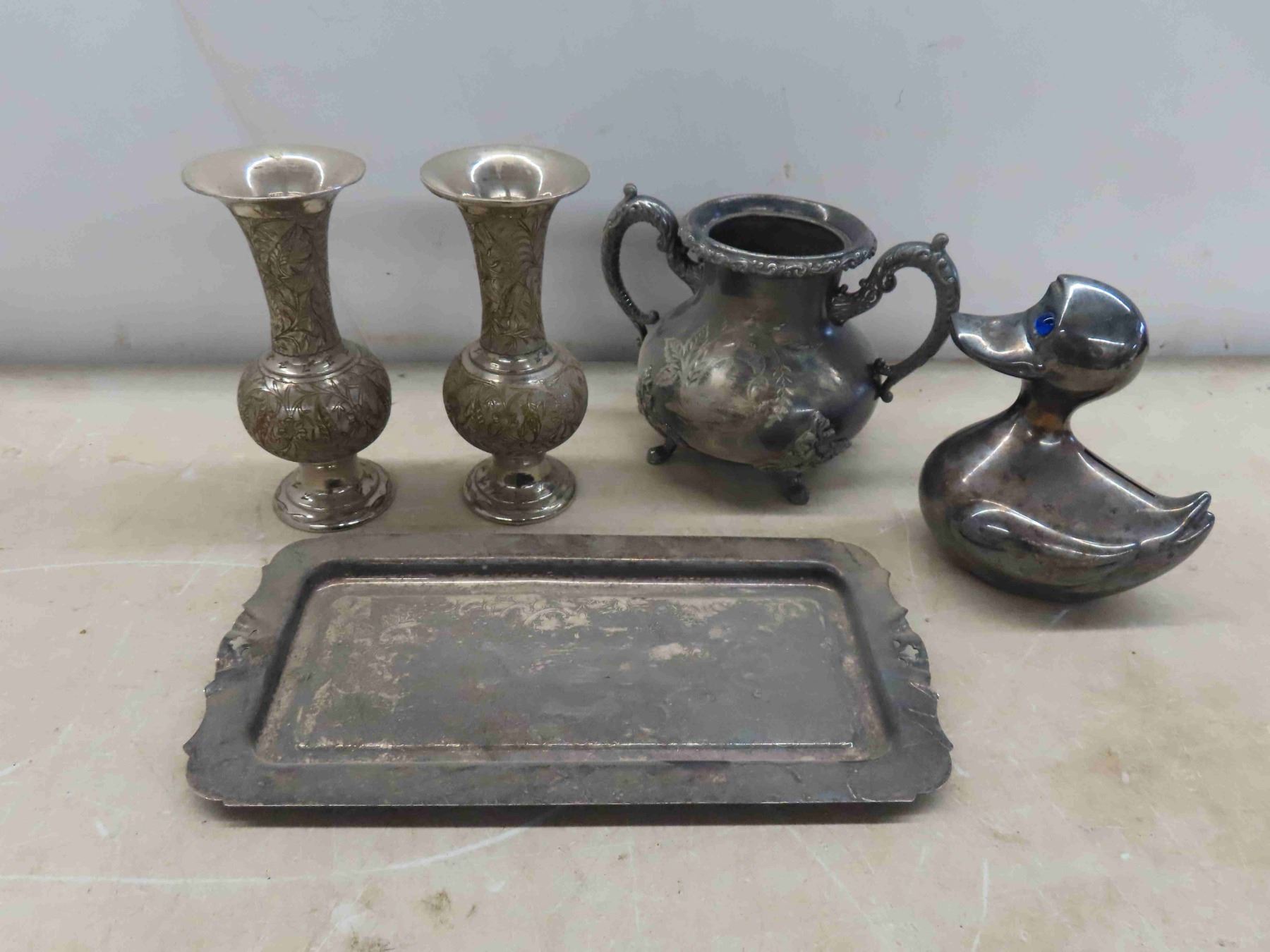 Silver Plated Vases, Ducky Bank, Spindle, Water Fountain & More