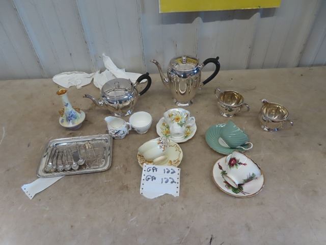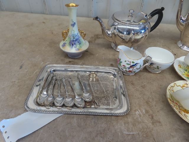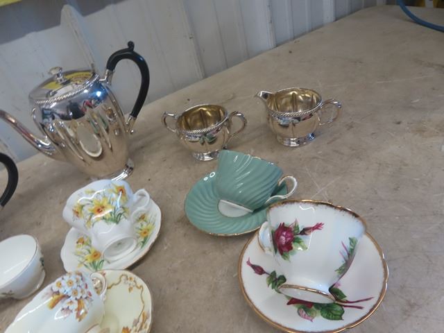 Silver Tea Set, China Cream + Sugar Pairs ; Paragon, Royal Albert, Aynsley, Bavaria Vase