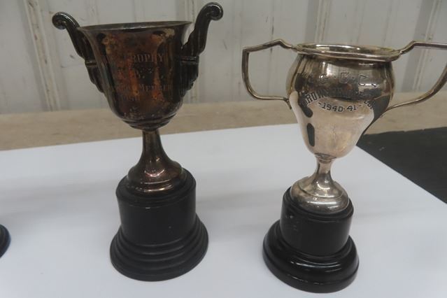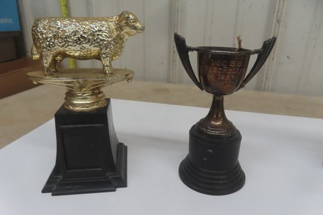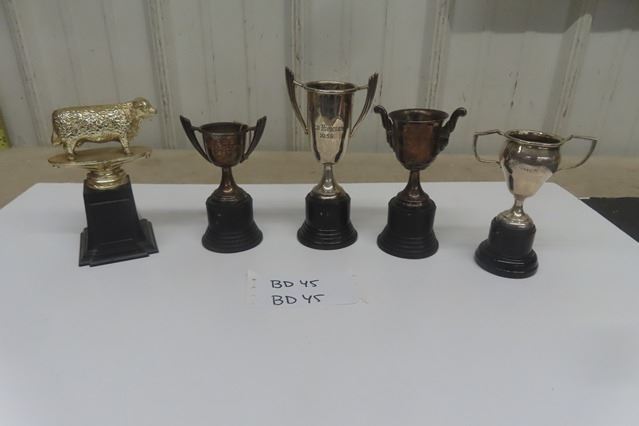 Silverplated 1940's + 1950's Trophy Lot ; Birks Trophy, Golf Trophy, Livestock Trophy plus others