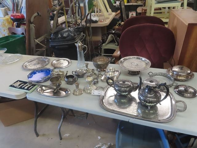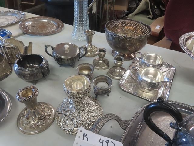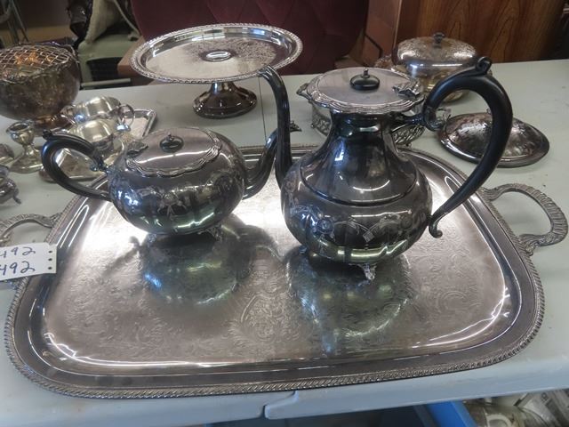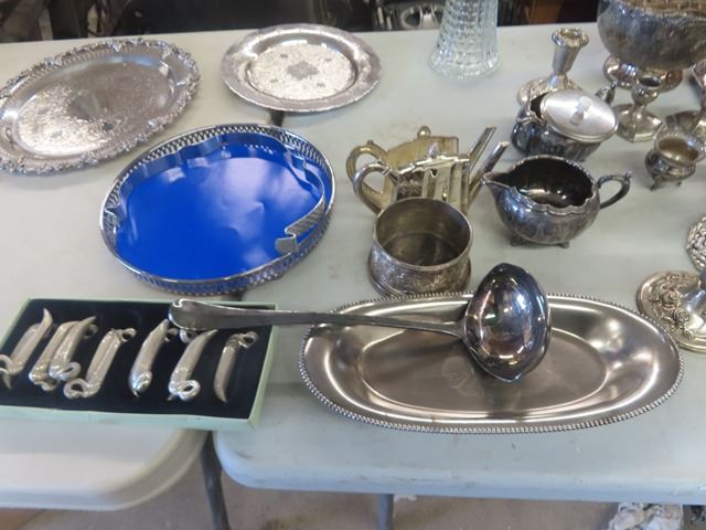 Silverware, Tea Pot, Cream + Sugar Pair, Candle Holder, Trays plus more