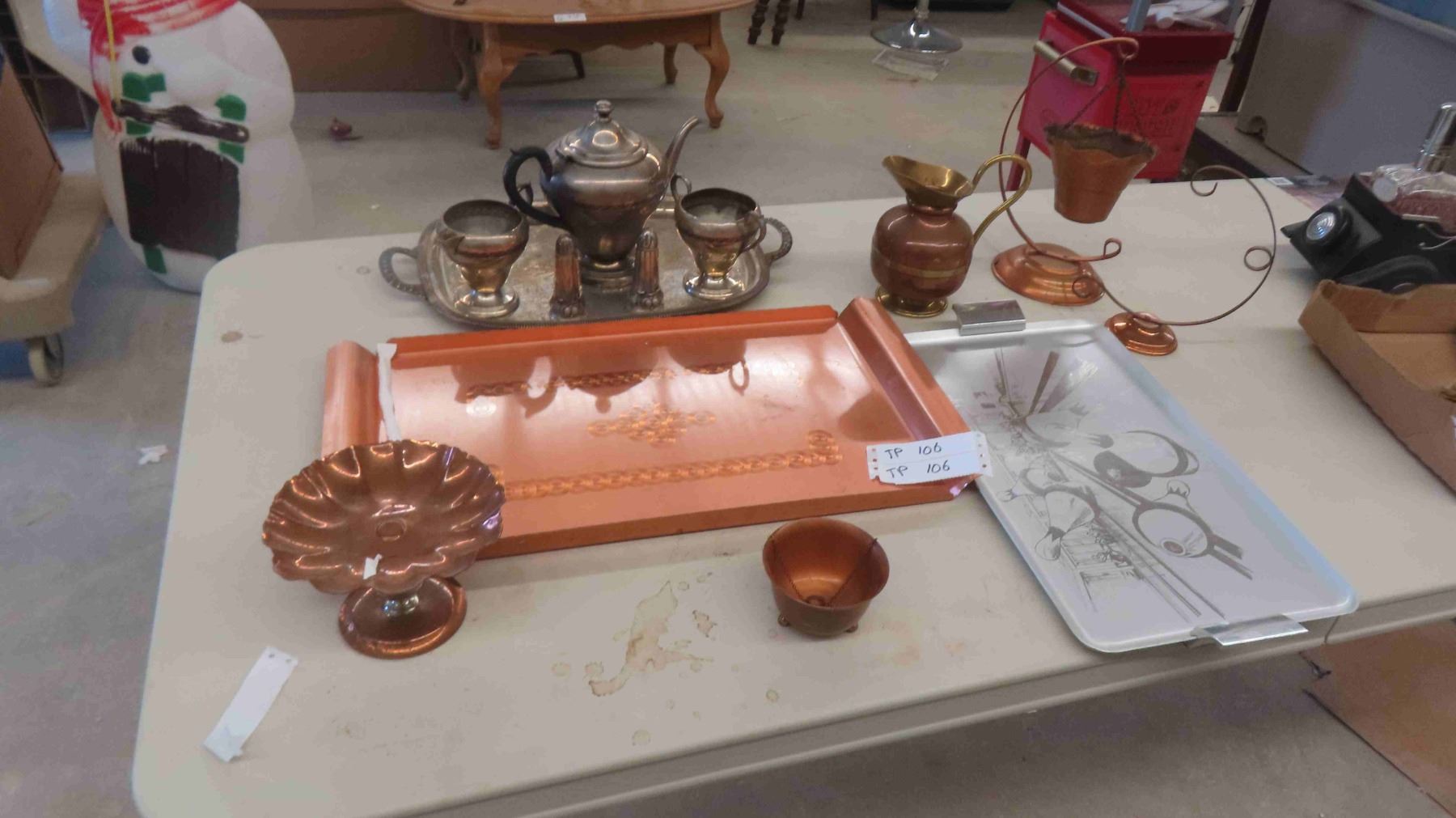 Silverware and Copperware: Tea Set, Planter, Dish, Pitcher, Trays, Plus