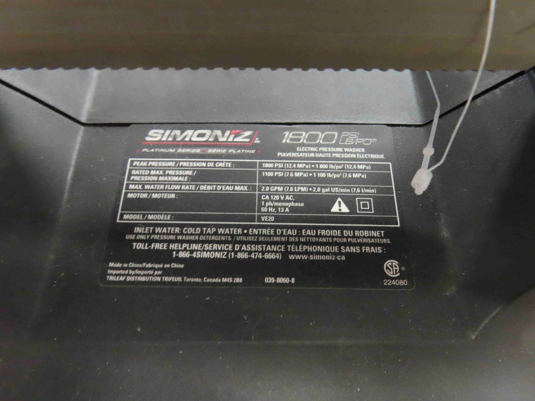Simoniz 1800 Psi Portable Pressure Washer - Works, Needs Brass Link Up Coupler