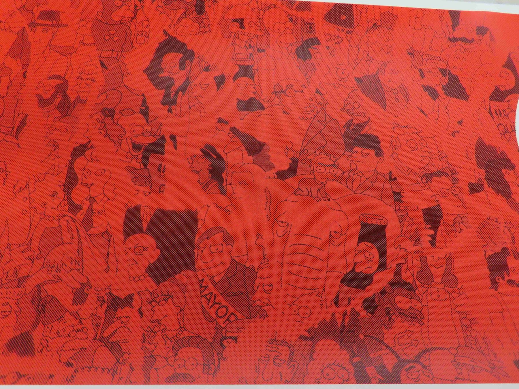 Simpsons Banner 30ft L on Heavy Poster Paper with Homer and Colorful Illustrations ''Global Fanfest Headquarters Woo-Hoo!''