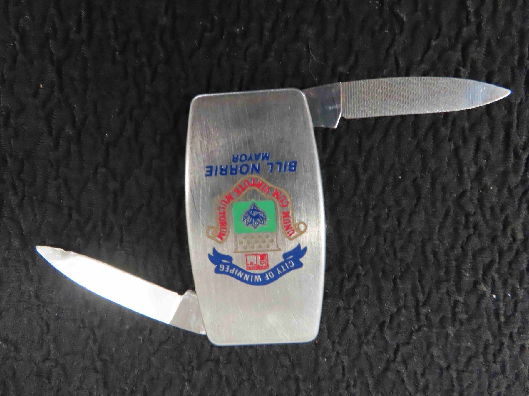 Singer Industries Ashtray, Bill Norrie Mayor Stainless Steel Pocket Knife,