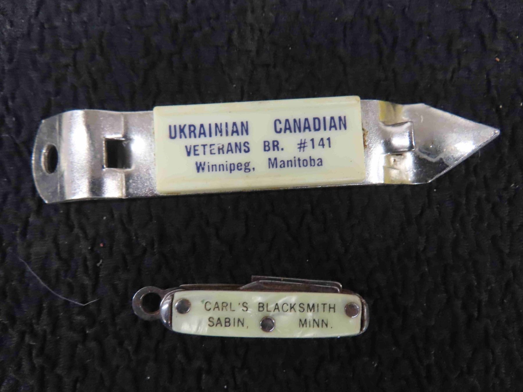 Singer Industries Ashtray, Bill Norrie Mayor Stainless Steel Pocket Knife, Bell Tape Measure, Carls Blacksmith Pocket Knife, Plus