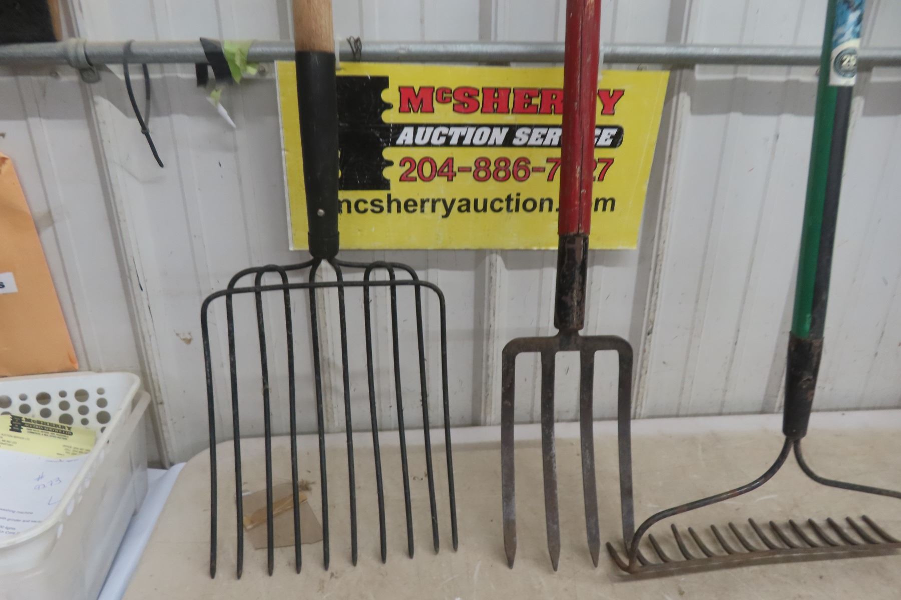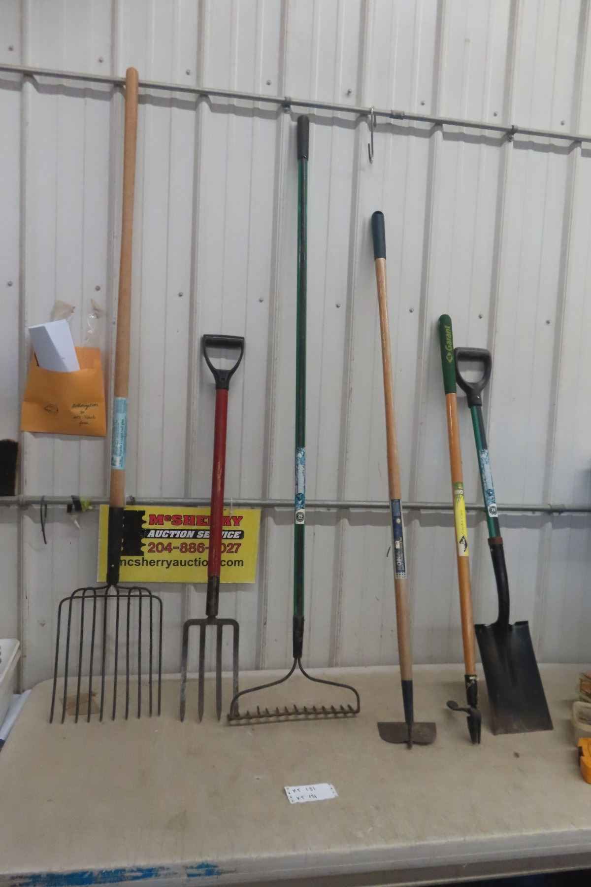 Six Hand Yard Tools: Two Shovels, Fork, Hoe, and More