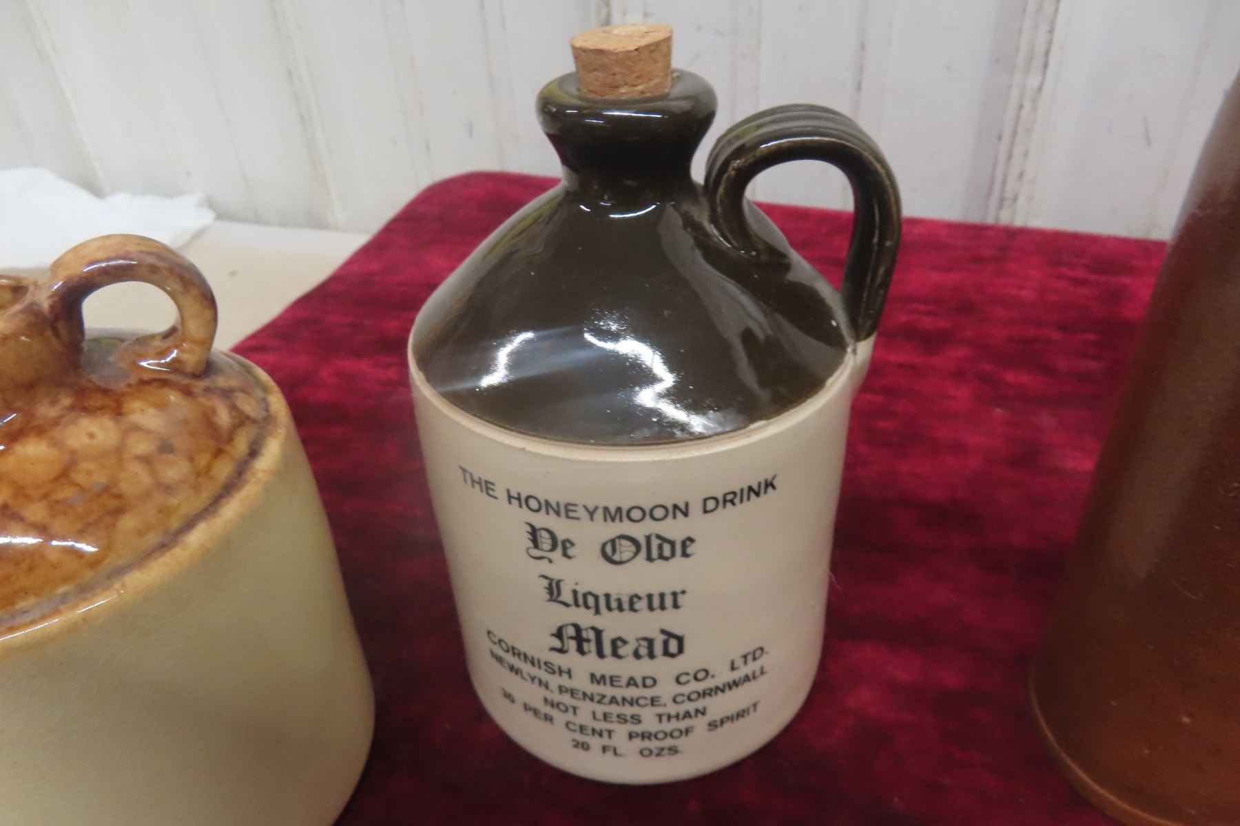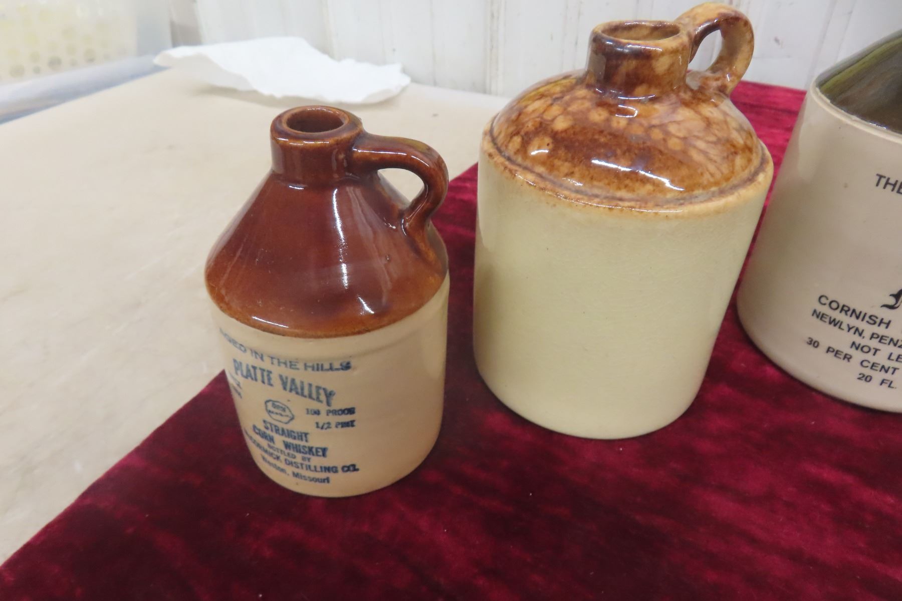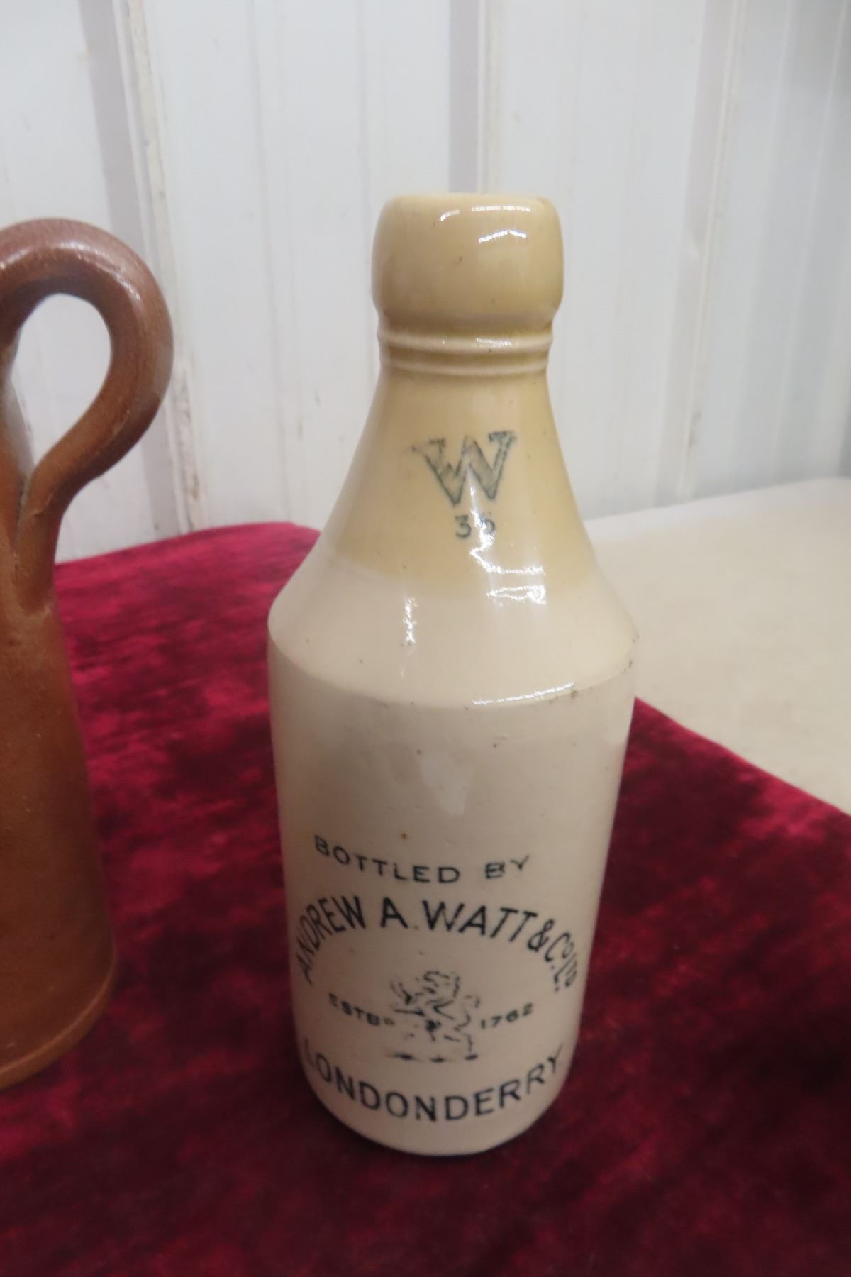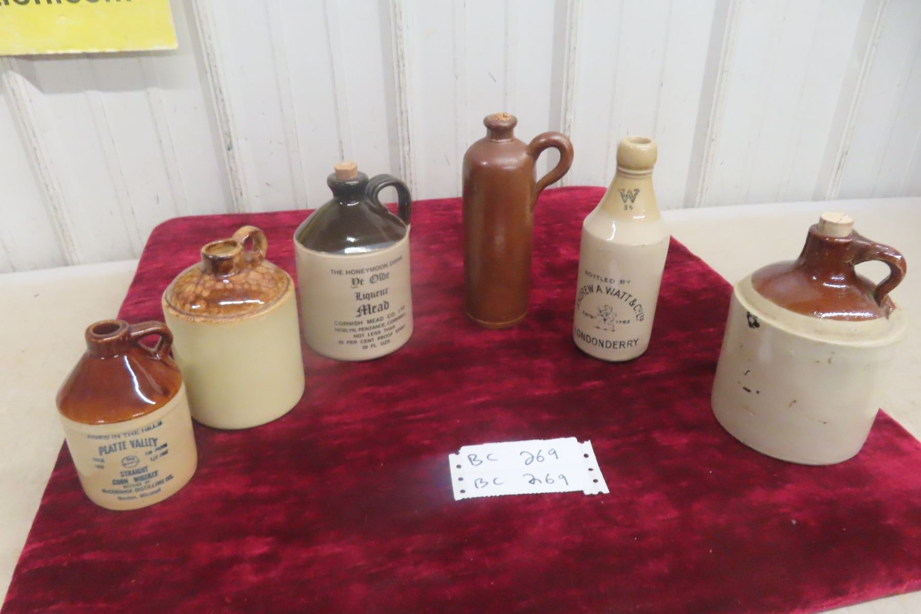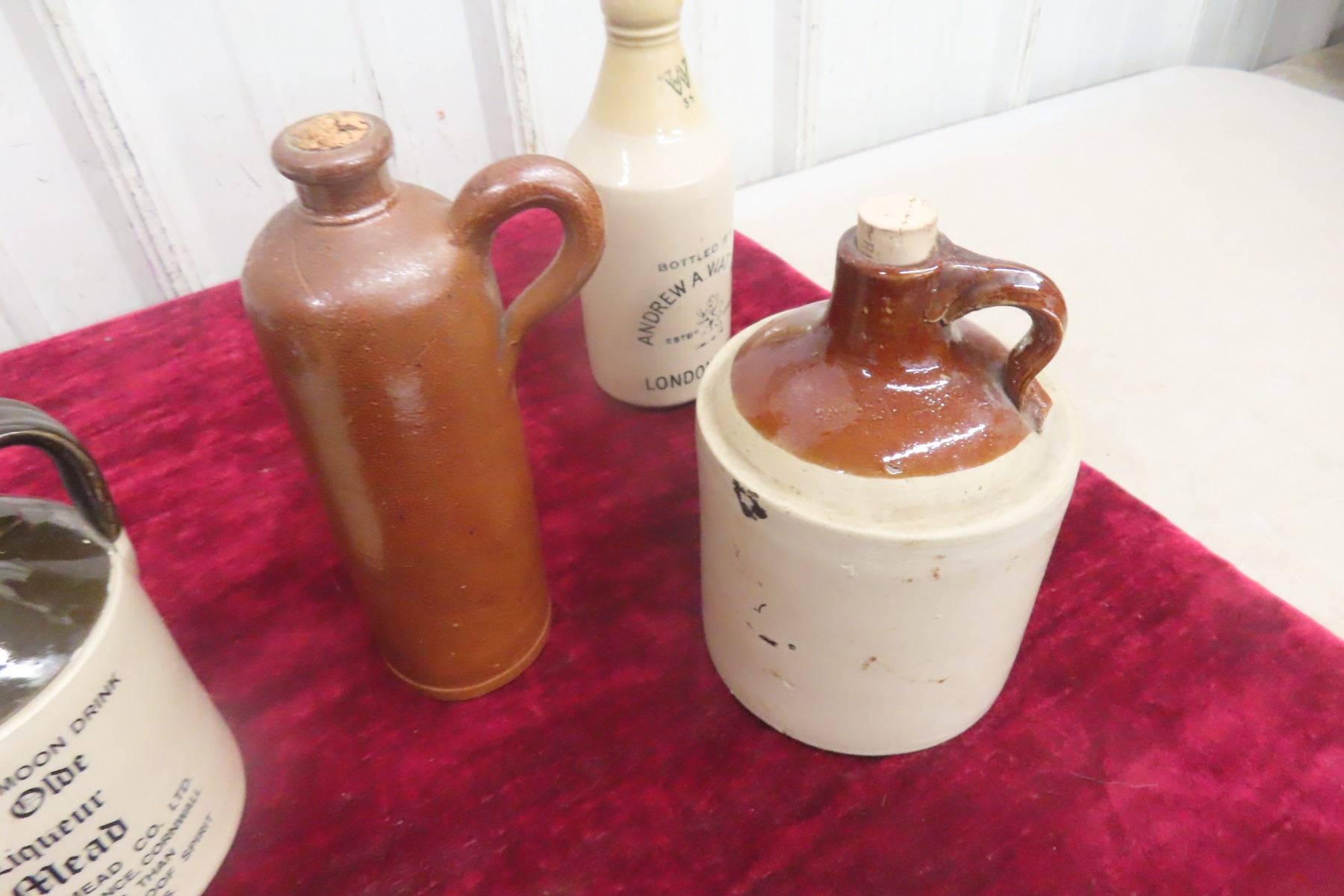 Six Stone Ware Small Jugs and Ginger Beer Bottles