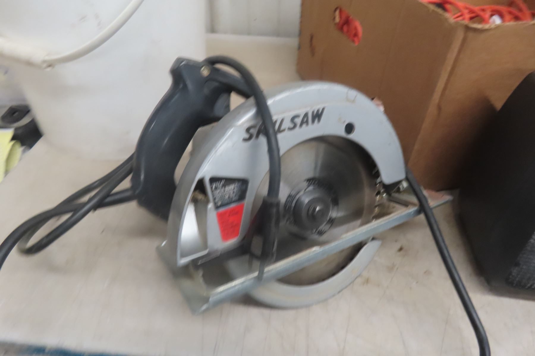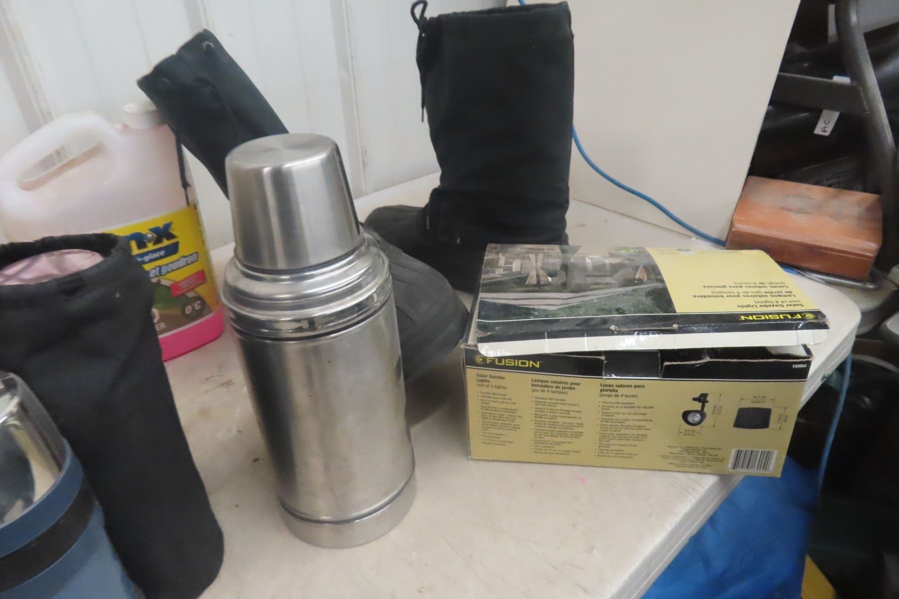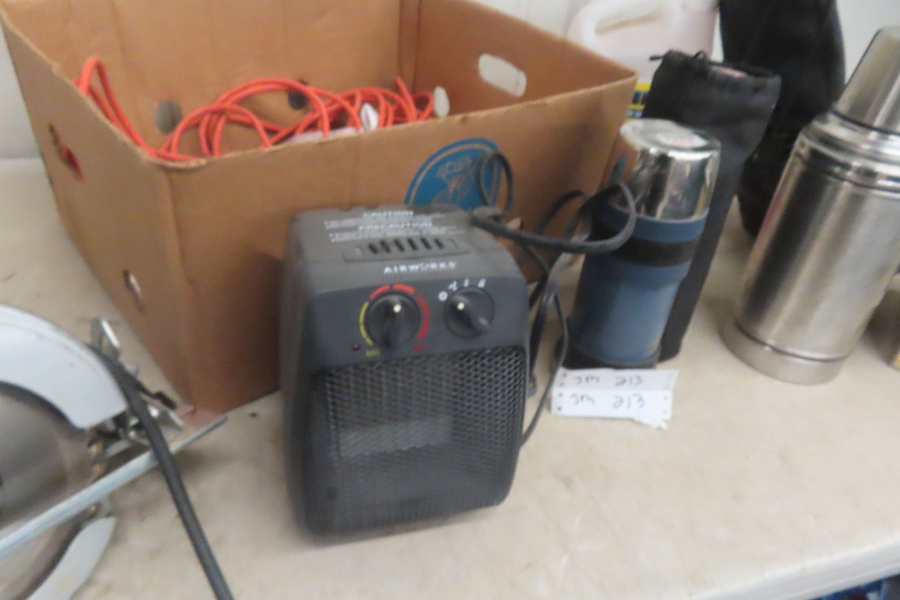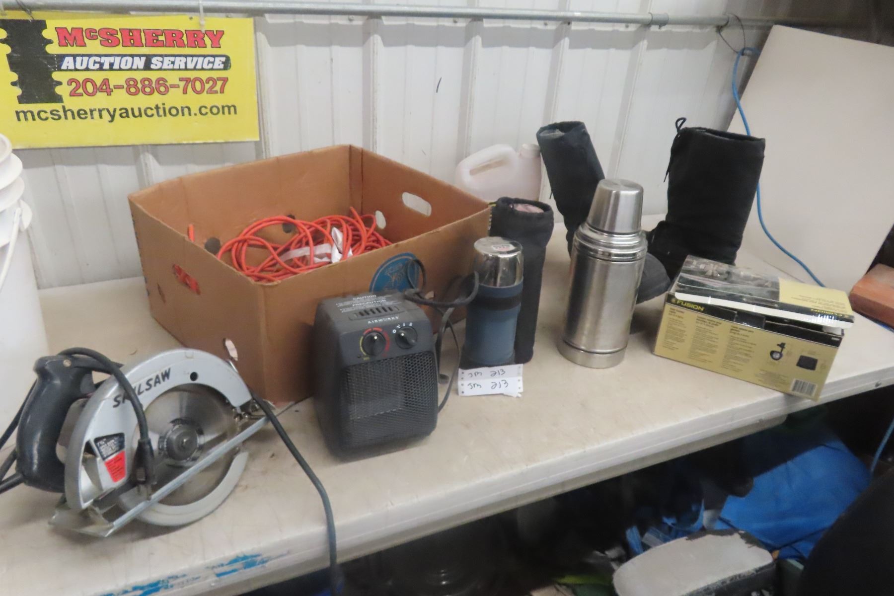Skil Power Saw; Electric Ceramic Heater; Thermos; Solar Yard Lights, Boots, Extension Cord