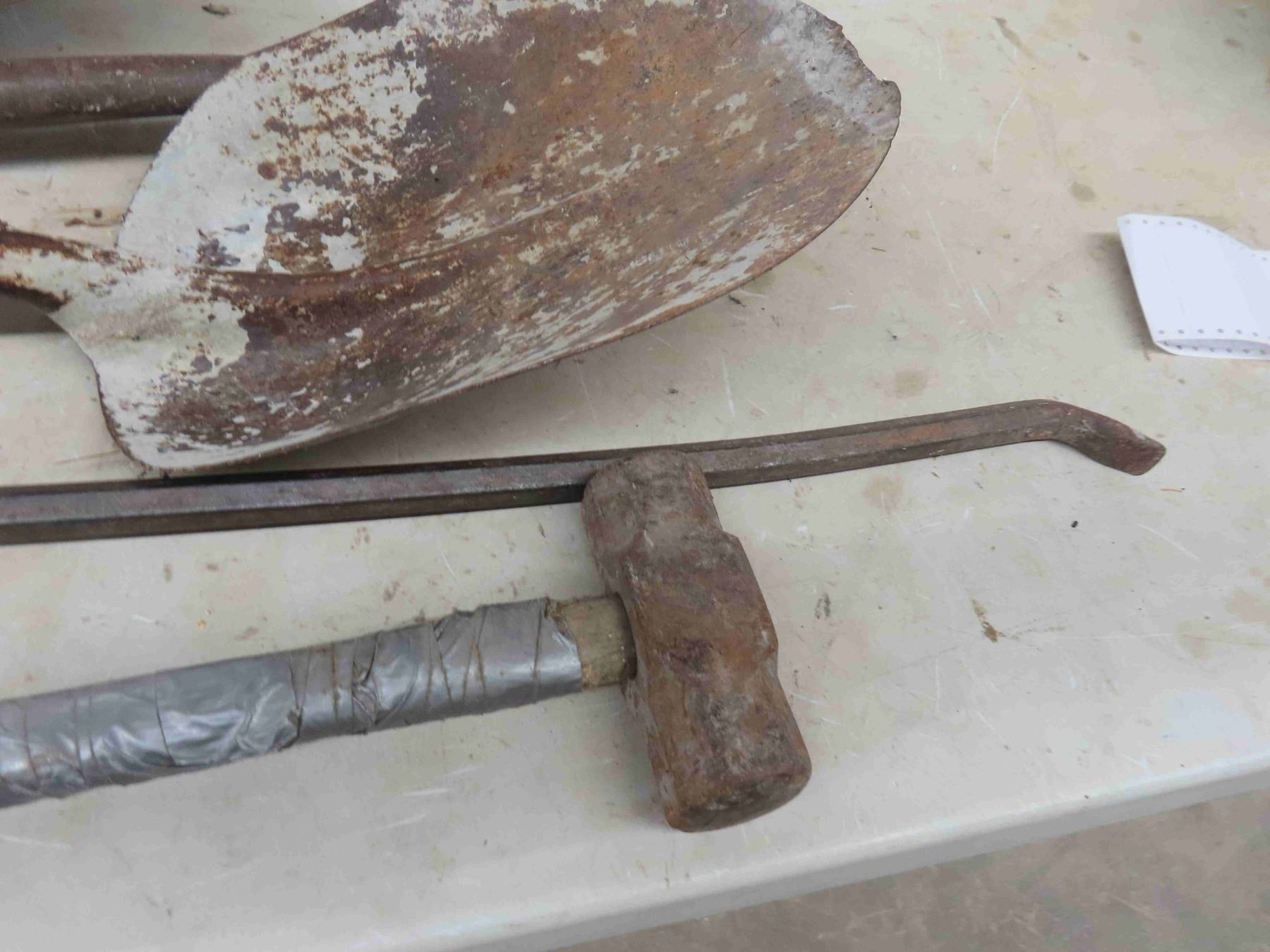Sledge Hammer, Wrecking Bar, Spade, Shovel