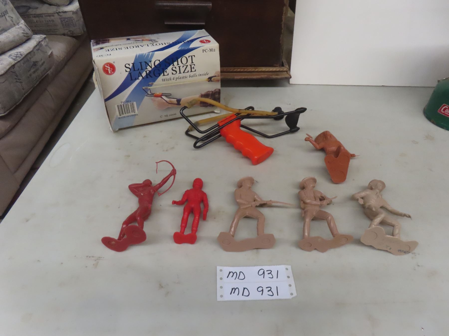 Slingshot and Vintage Louis Marx Plastic Figures 5 1/2" Tall