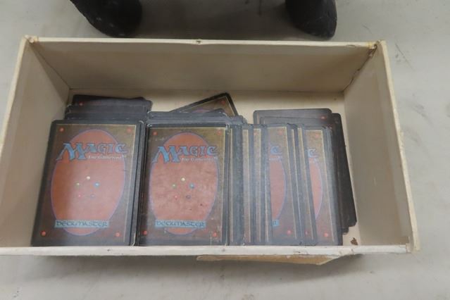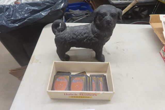Small Box of Magic the Gathering Cards + Cast Iron Dog Doorstop
