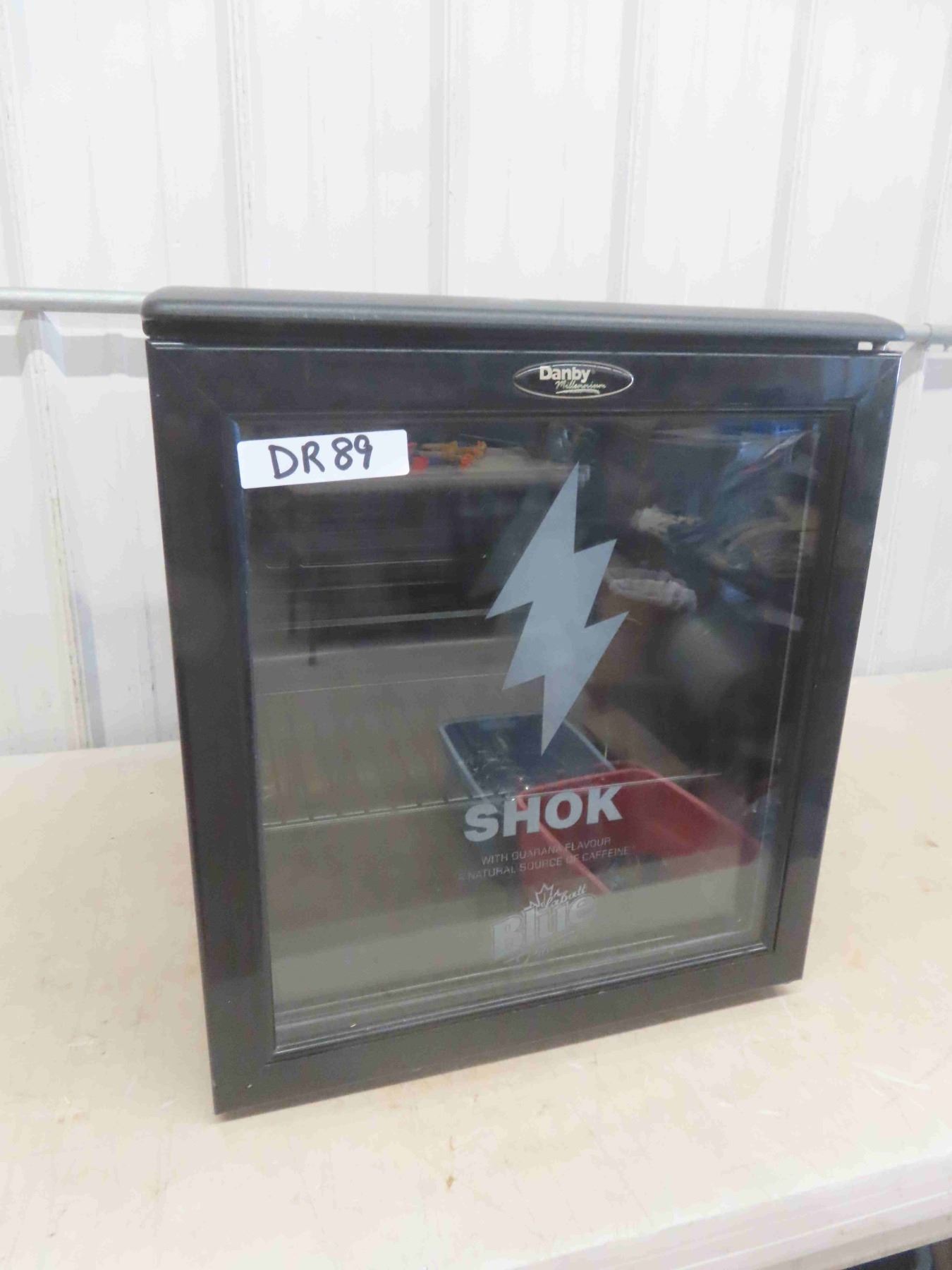 Small Danby Bar Fridge with Labatt's Blue Etched in Front Door Model DWC172BL , Glass Front Door 18" x 18" x 20"